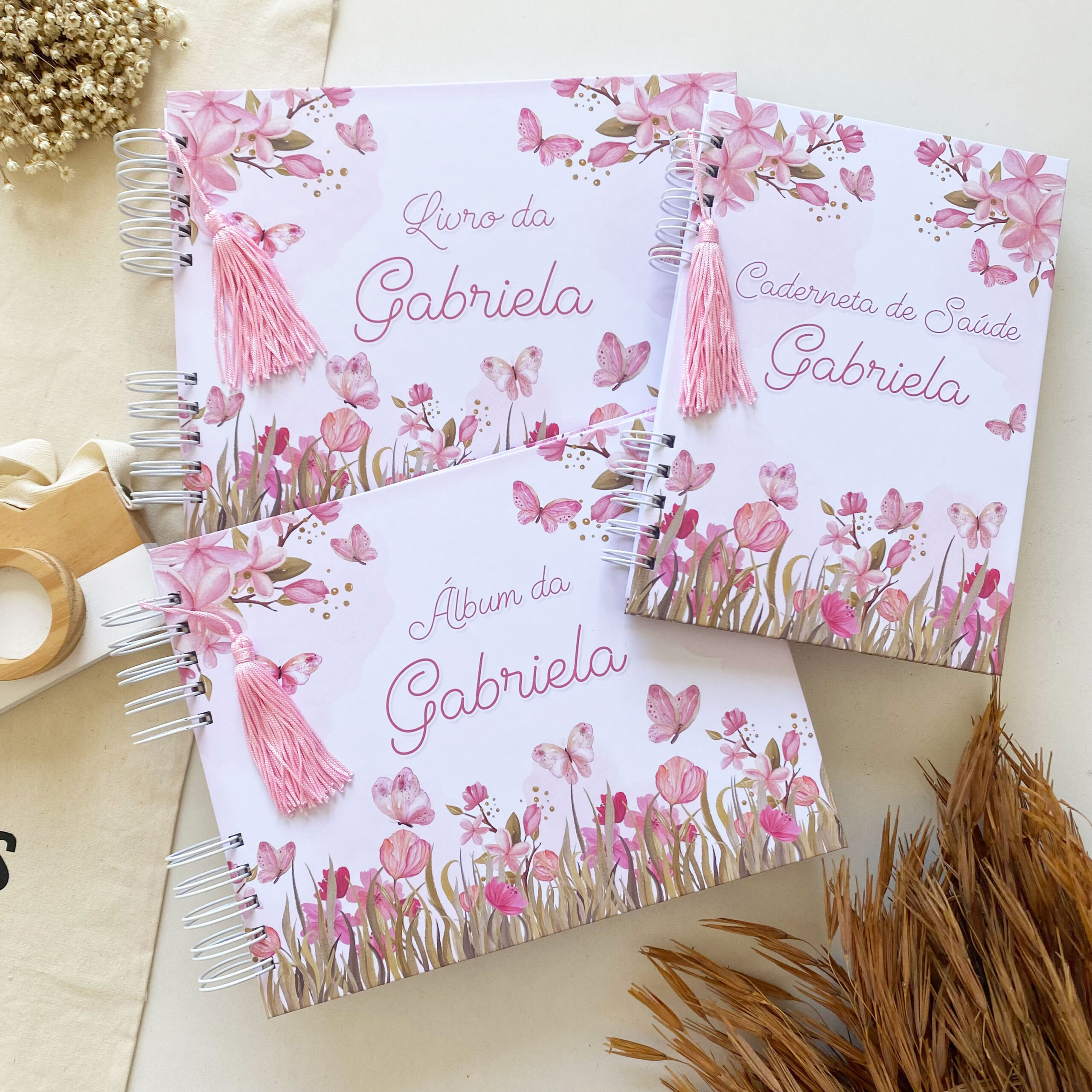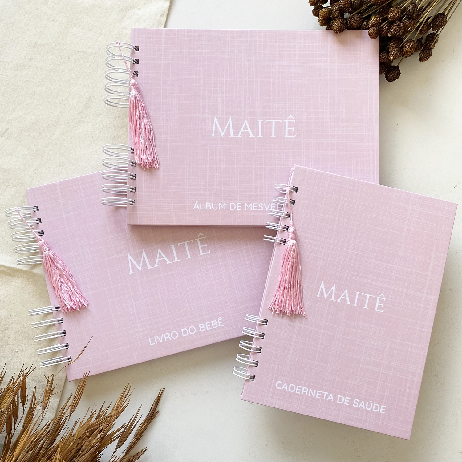 Kit Livro, Álbum e Caderneta Minimalista Rosa