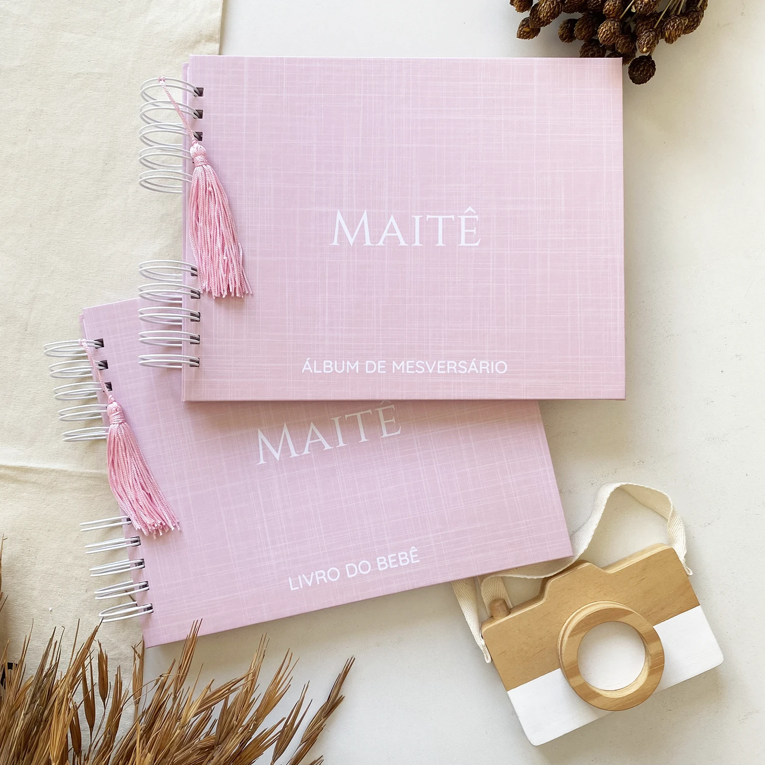 Kit Livro e Álbum Minimalista Linho Rosa 2