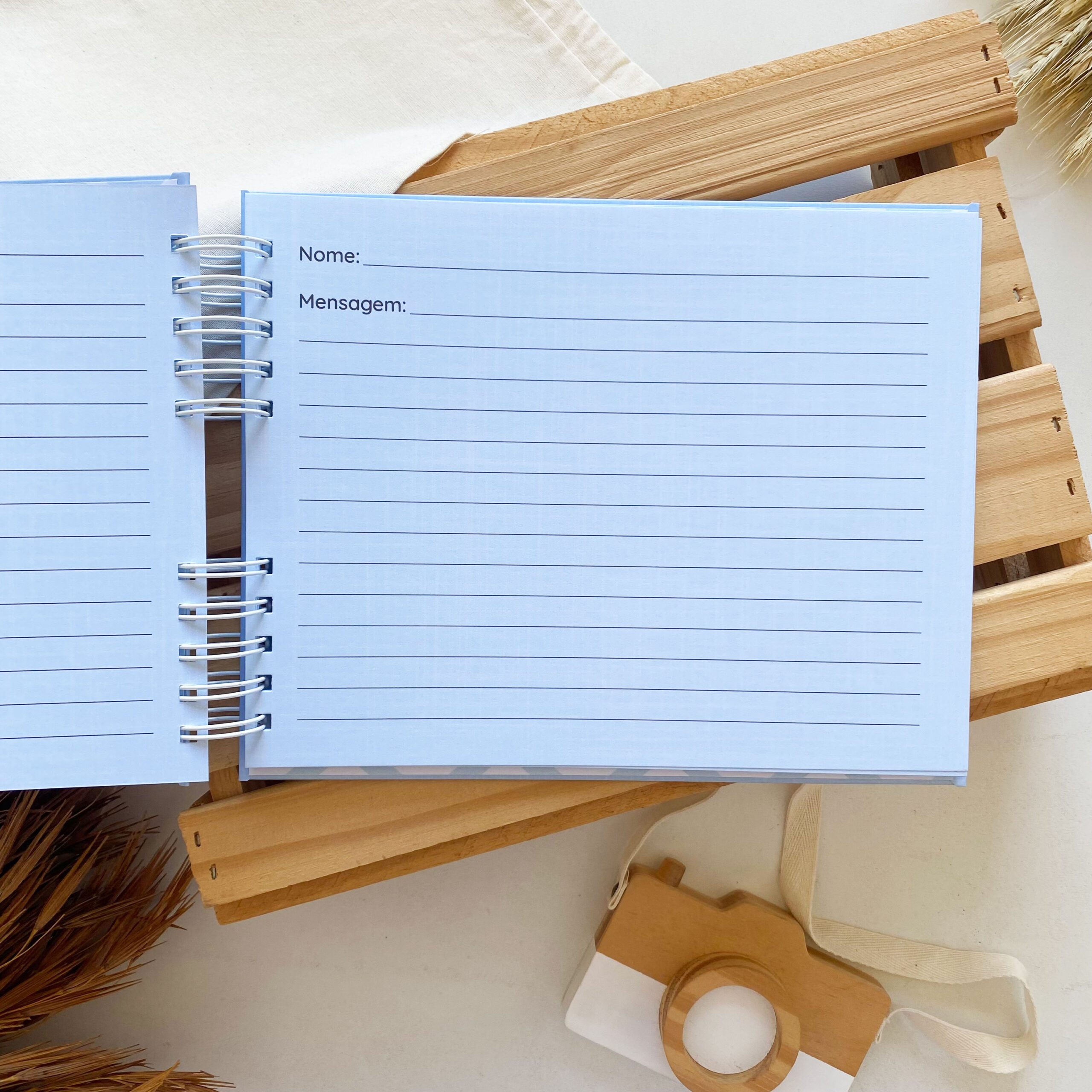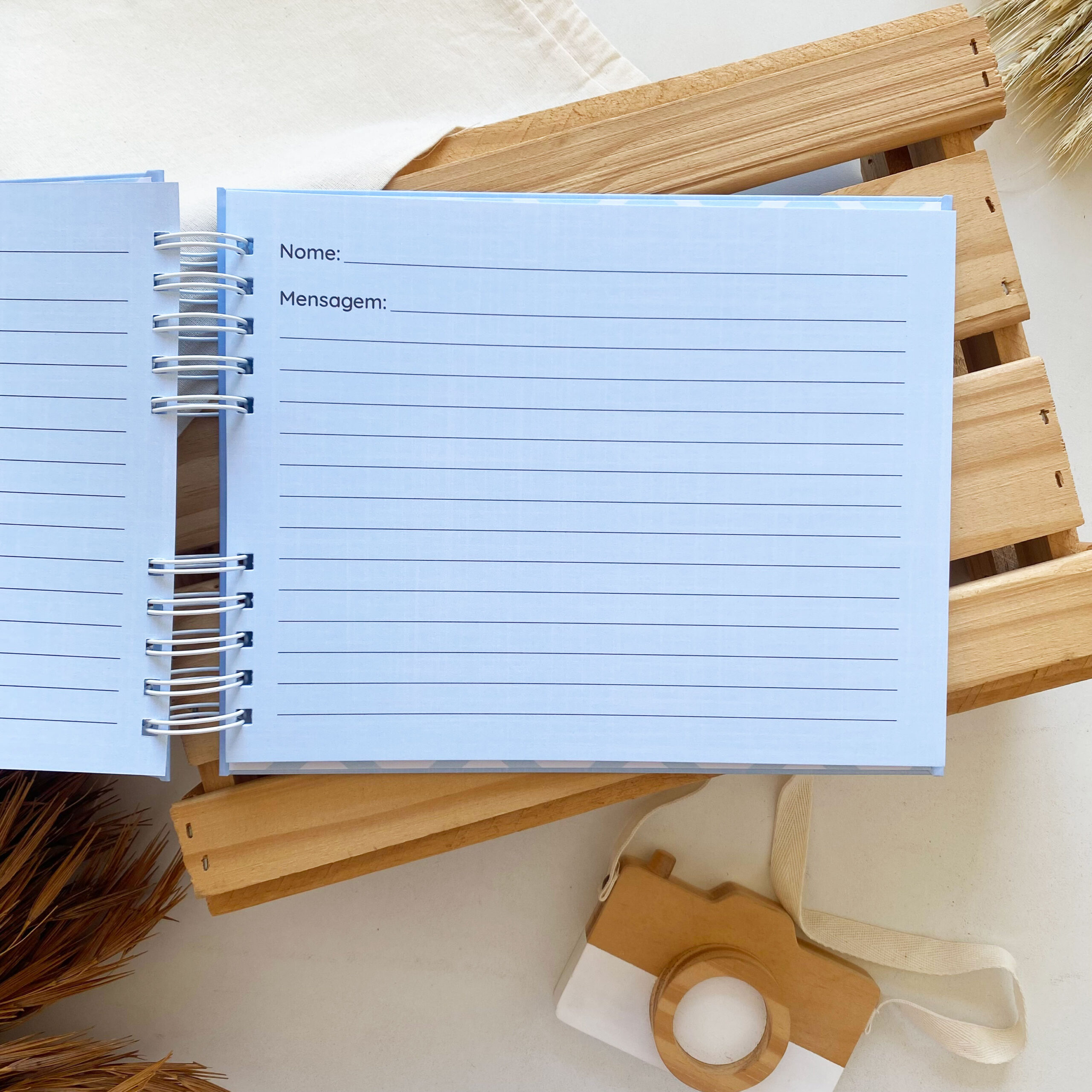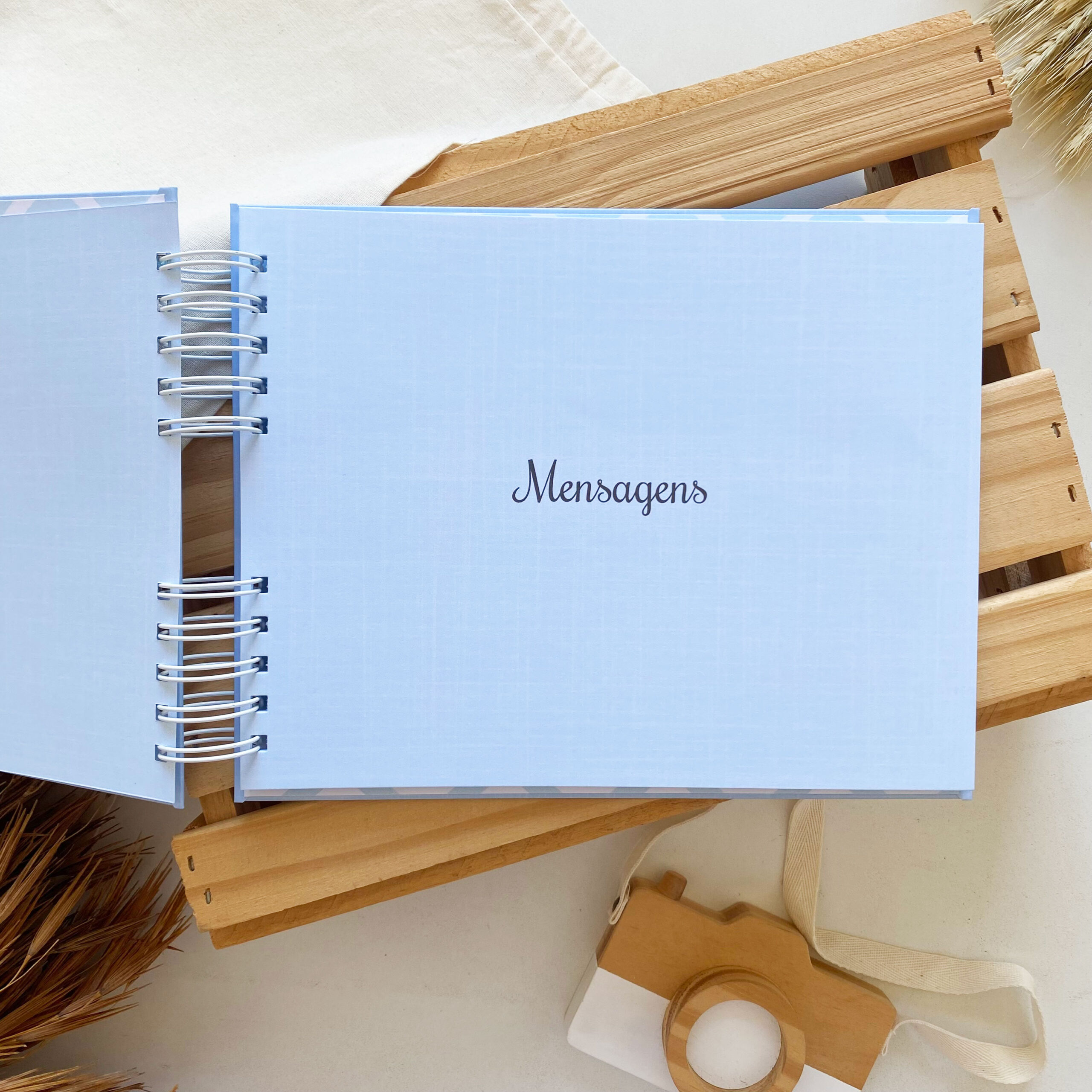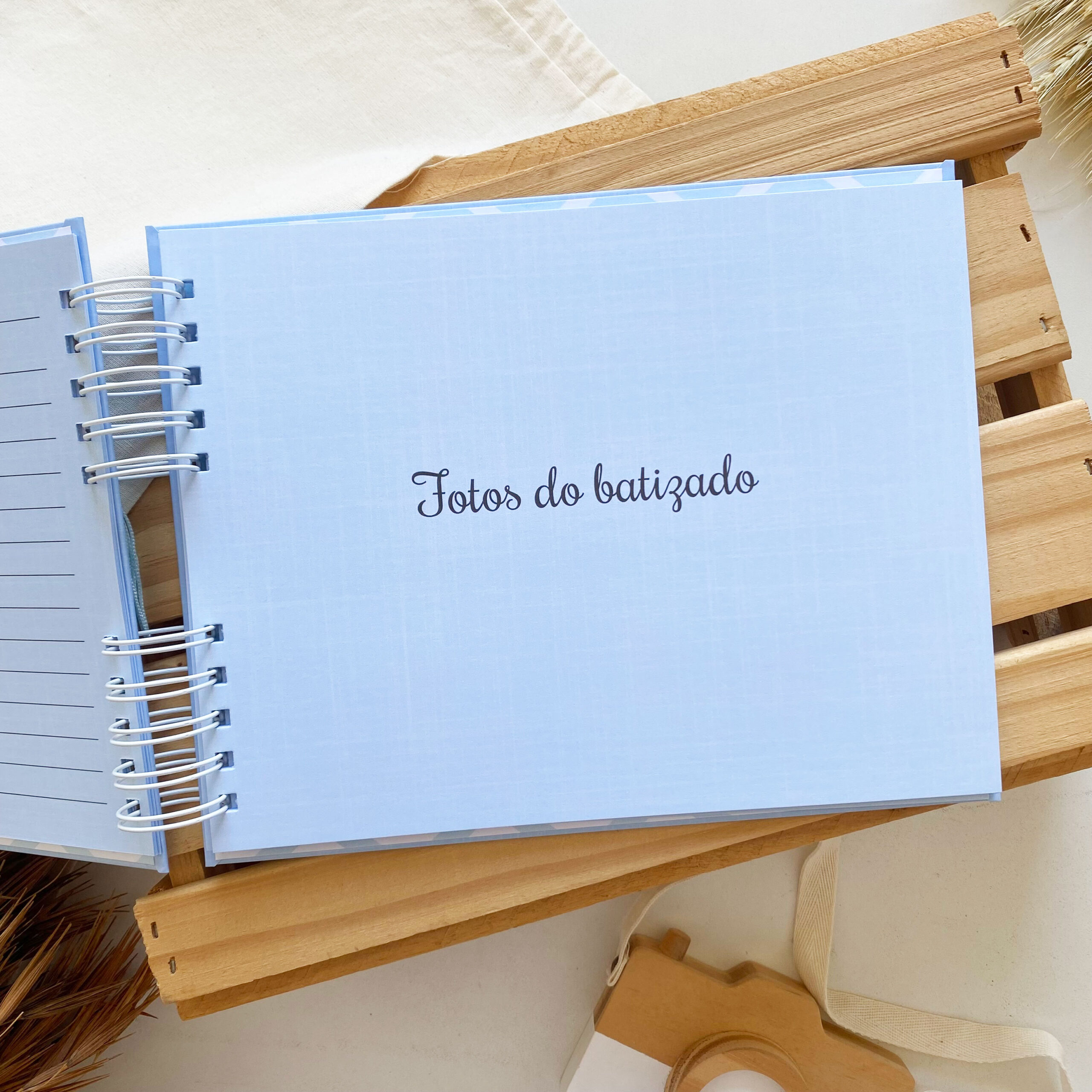 Álbum de Batizado Minimalista Linho Azul