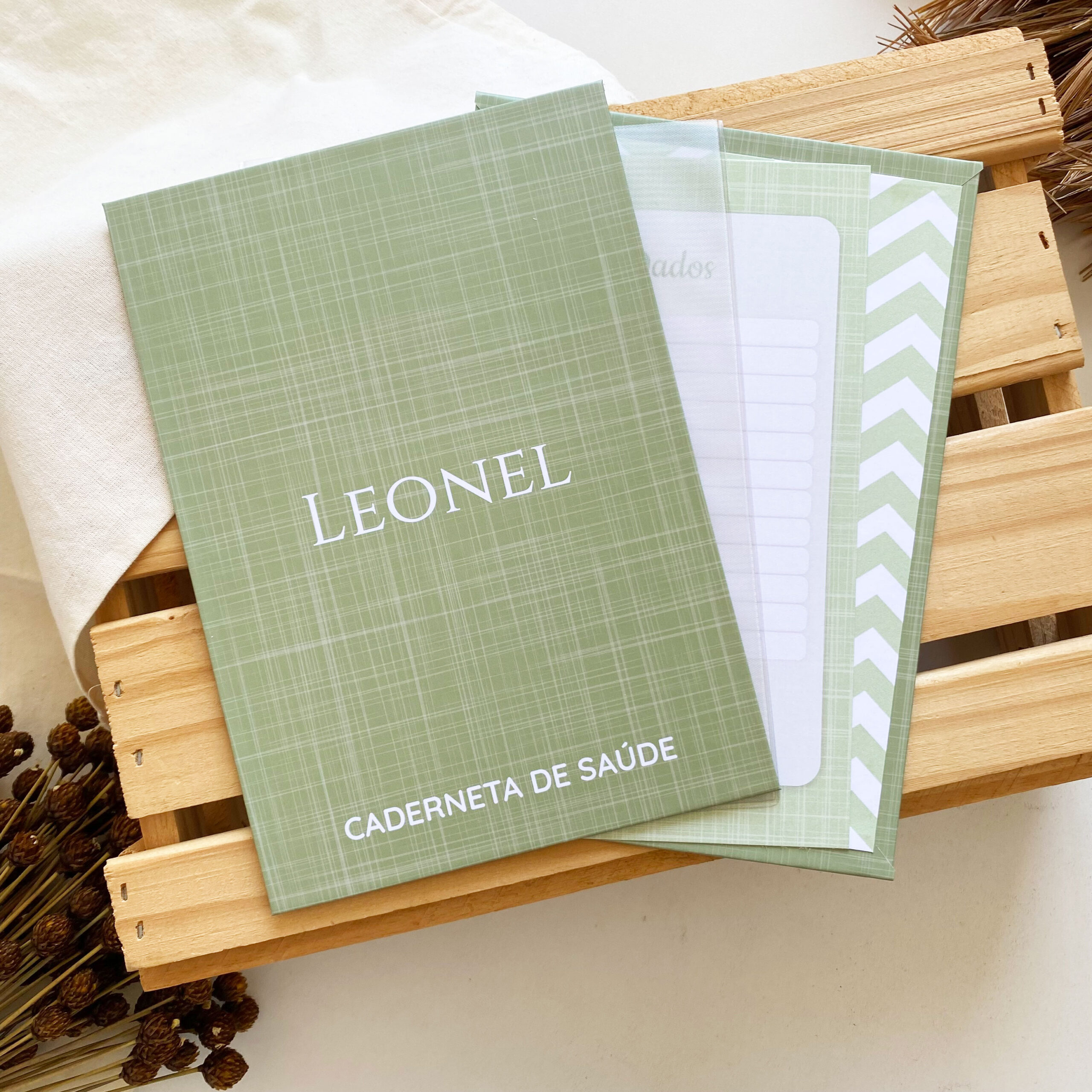 Capa Caderneta Minimalista Linho Verde