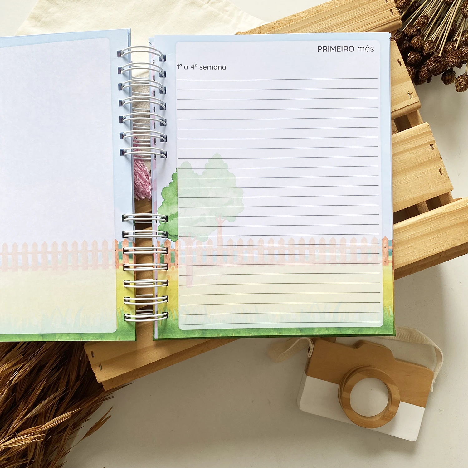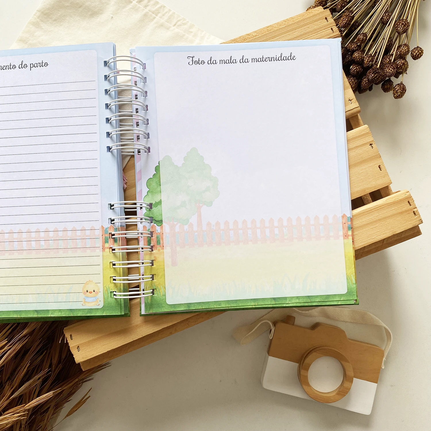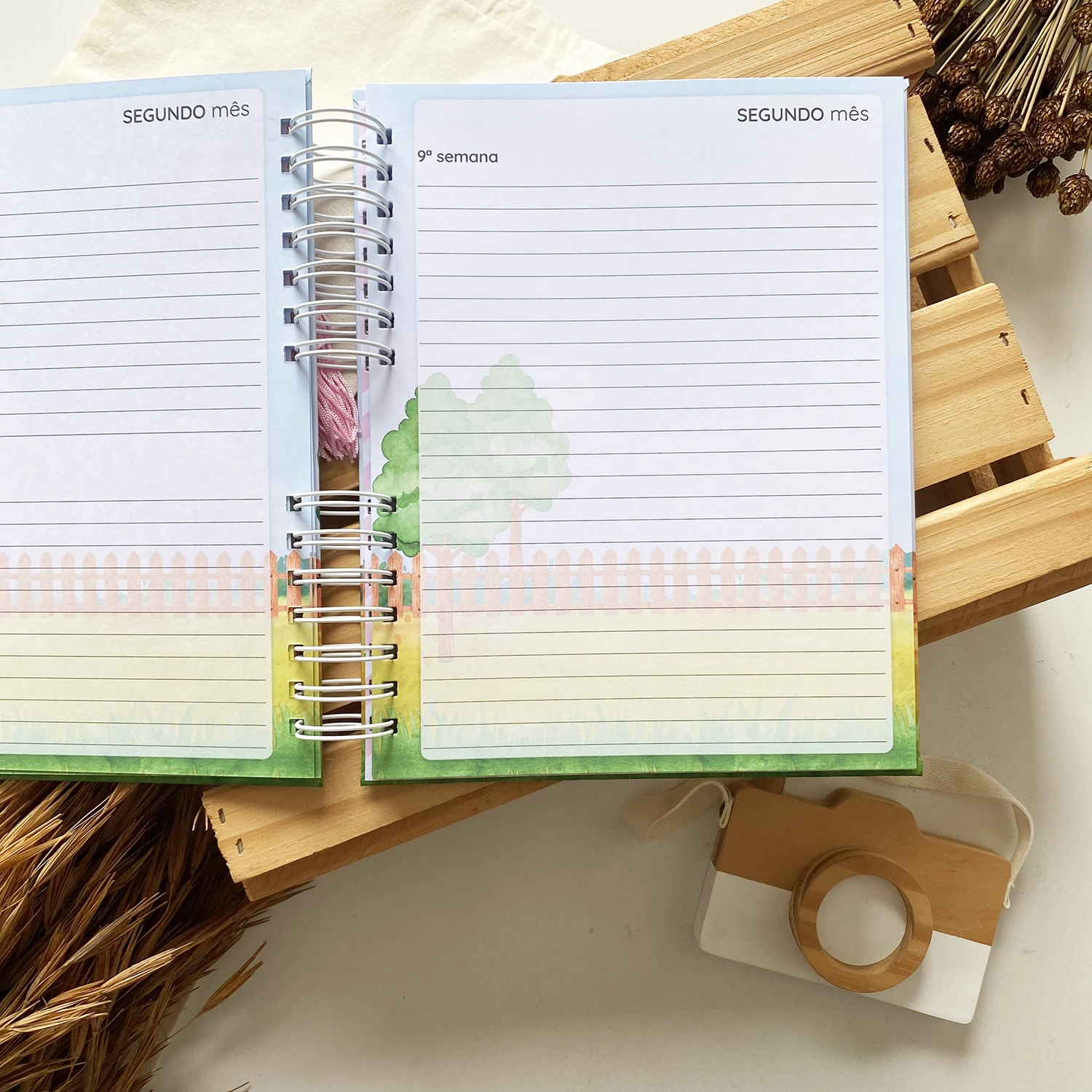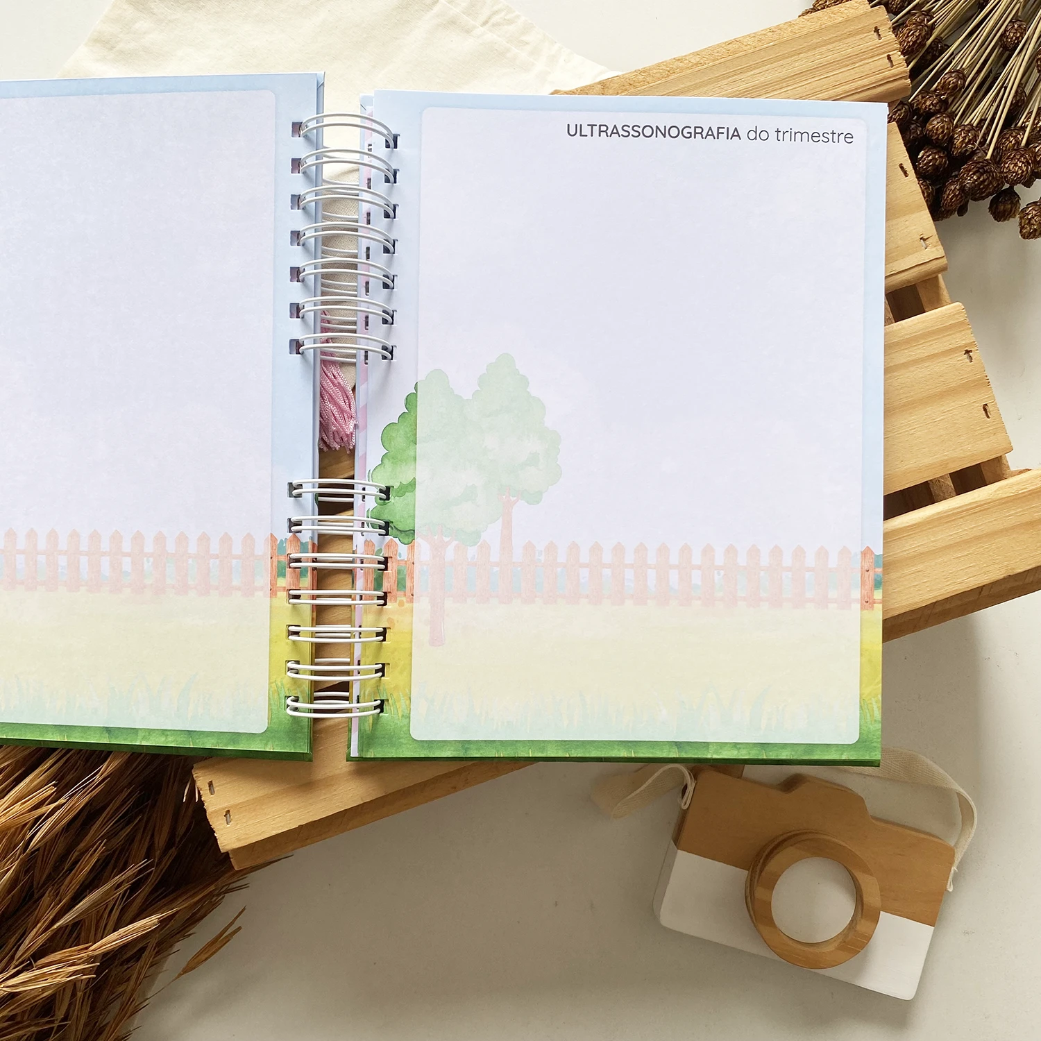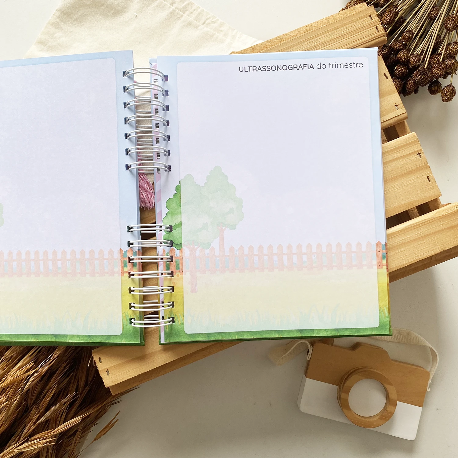 O Diário da Gestante possui espaços para registrar diversos momentos, incluindo textos de todas as semanas, fotos de todos os meses em um tamanho incrível de 15×21 e ultrassonografias de todos os trimestres.