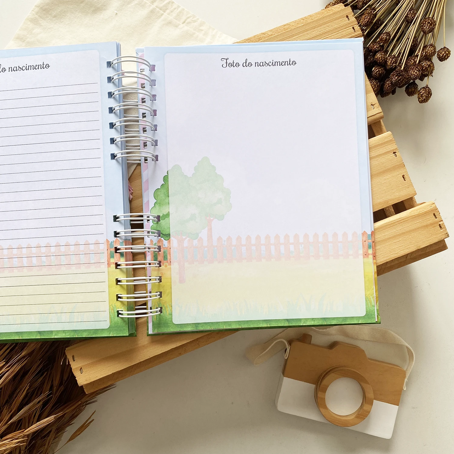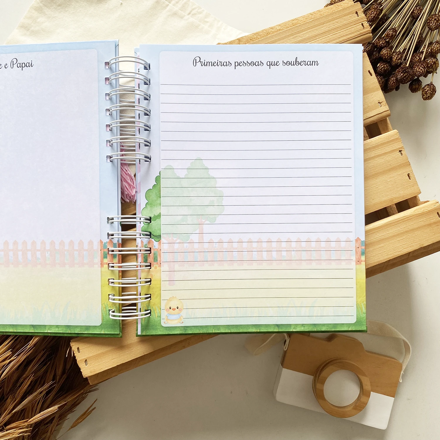 – Capa dura personalizada com o nome do bebê na capa;