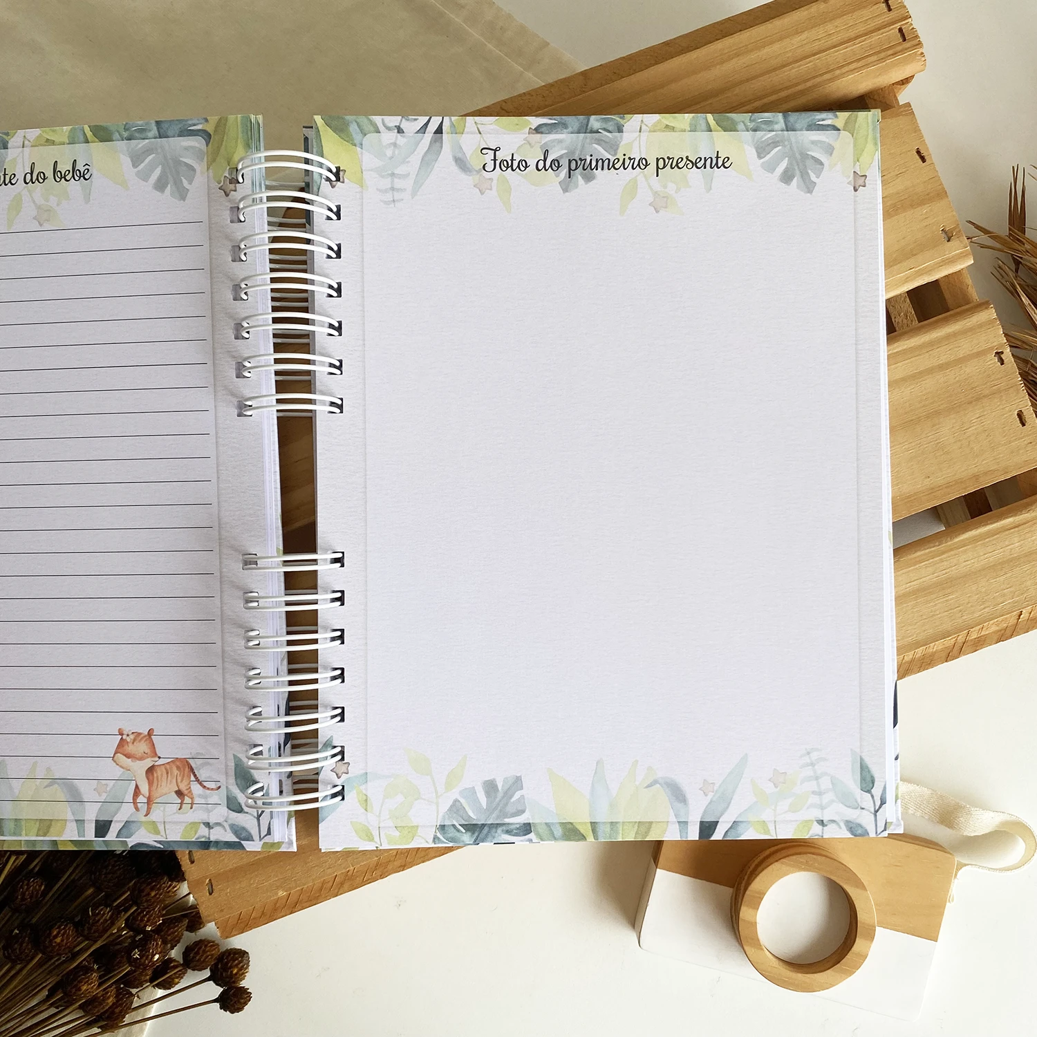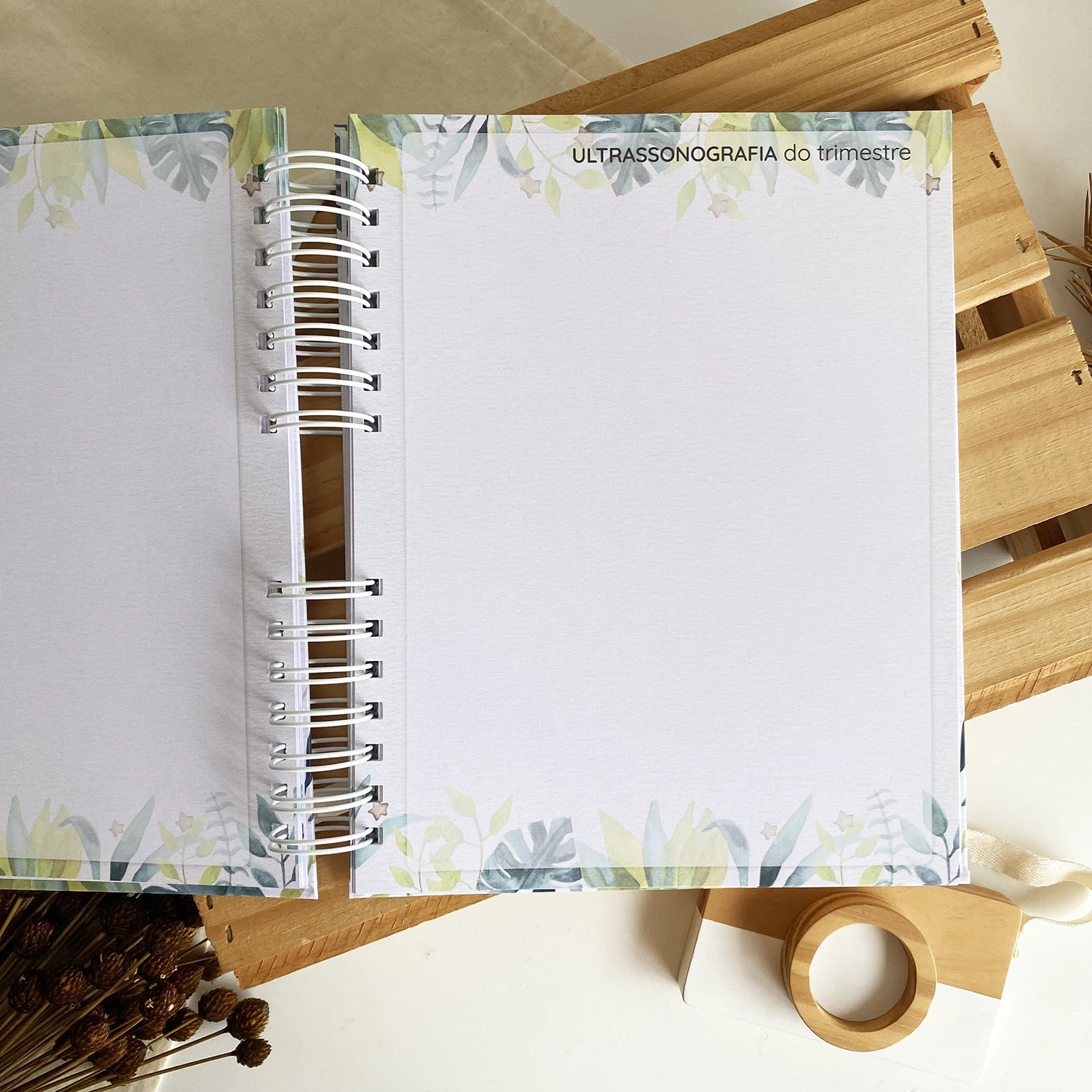 O Diário da Gestante possui espaços para registrar diversos momentos, incluindo textos de todas as semanas, fotos de todos os meses em um tamanho incrível de 15×21 e ultrassonografias de todos os trimestres.
