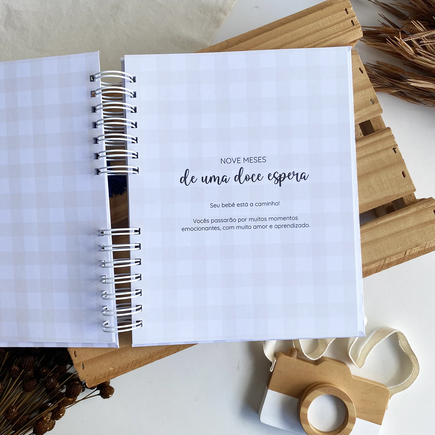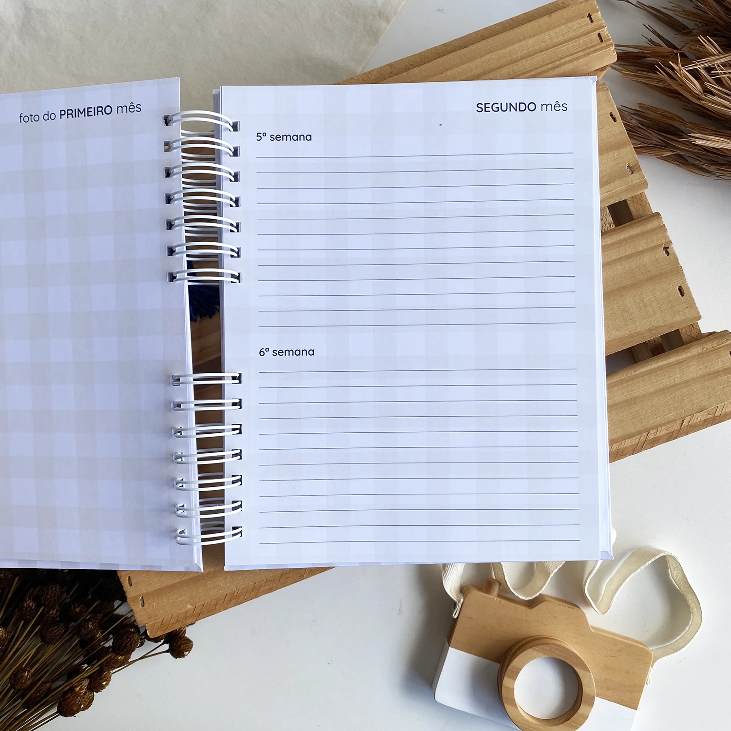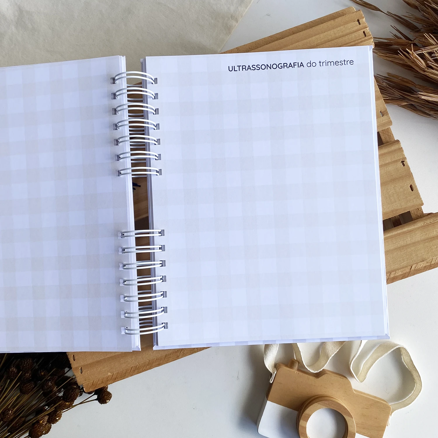 O Diário da Gestante possui espaços para registrar diversos momentos, incluindo textos de todas as semanas, fotos de todos os meses em um tamanho incrível de 15×21 e ultrassonografias de todos os trimestres.