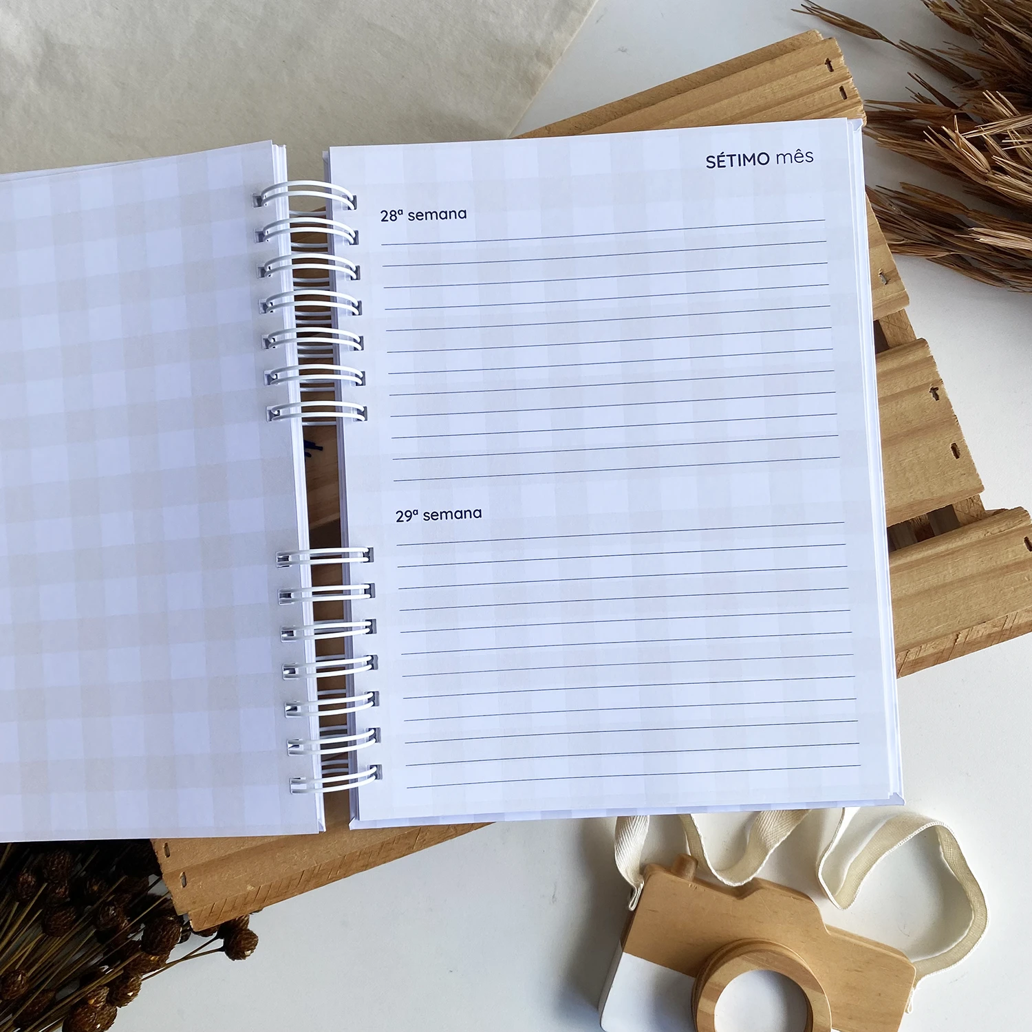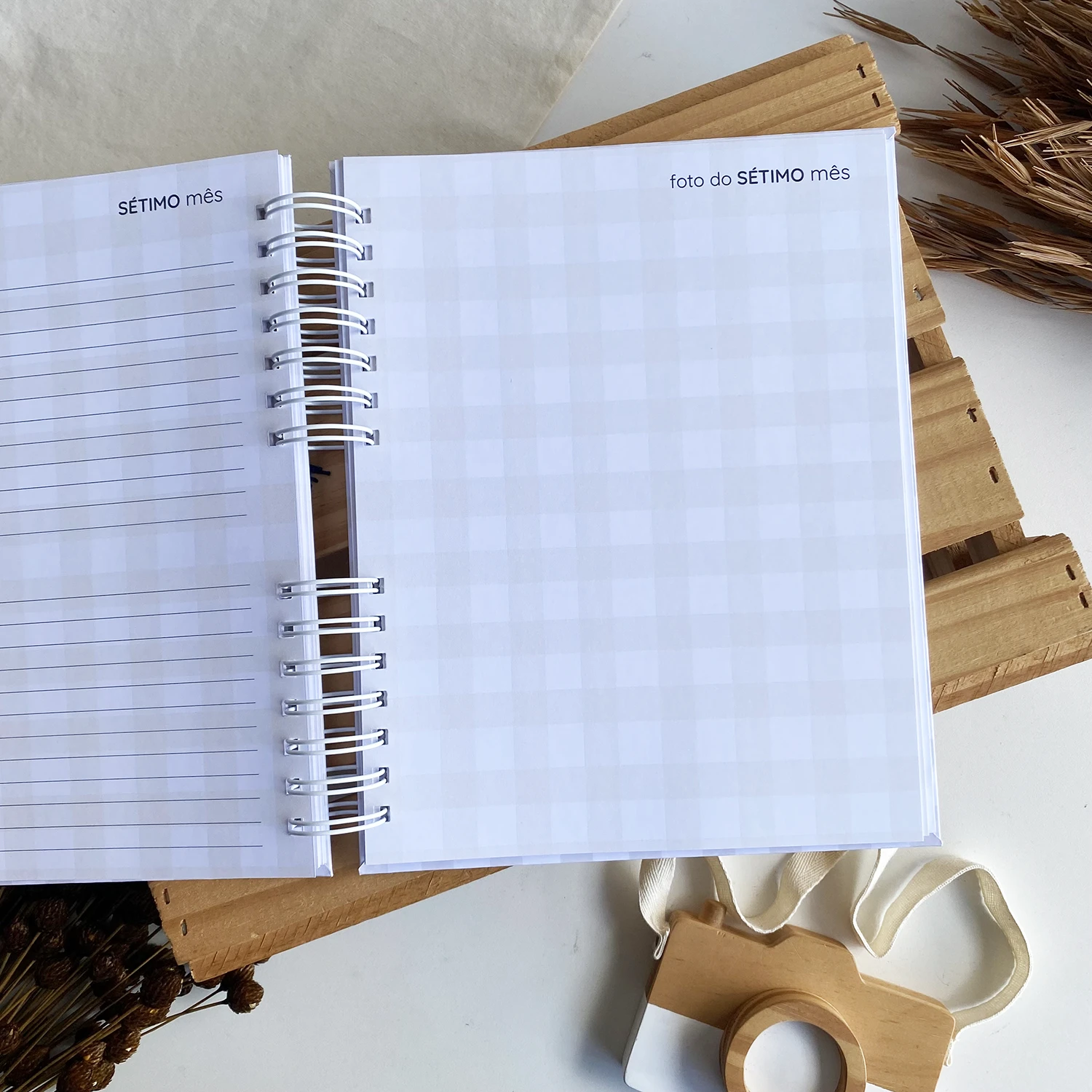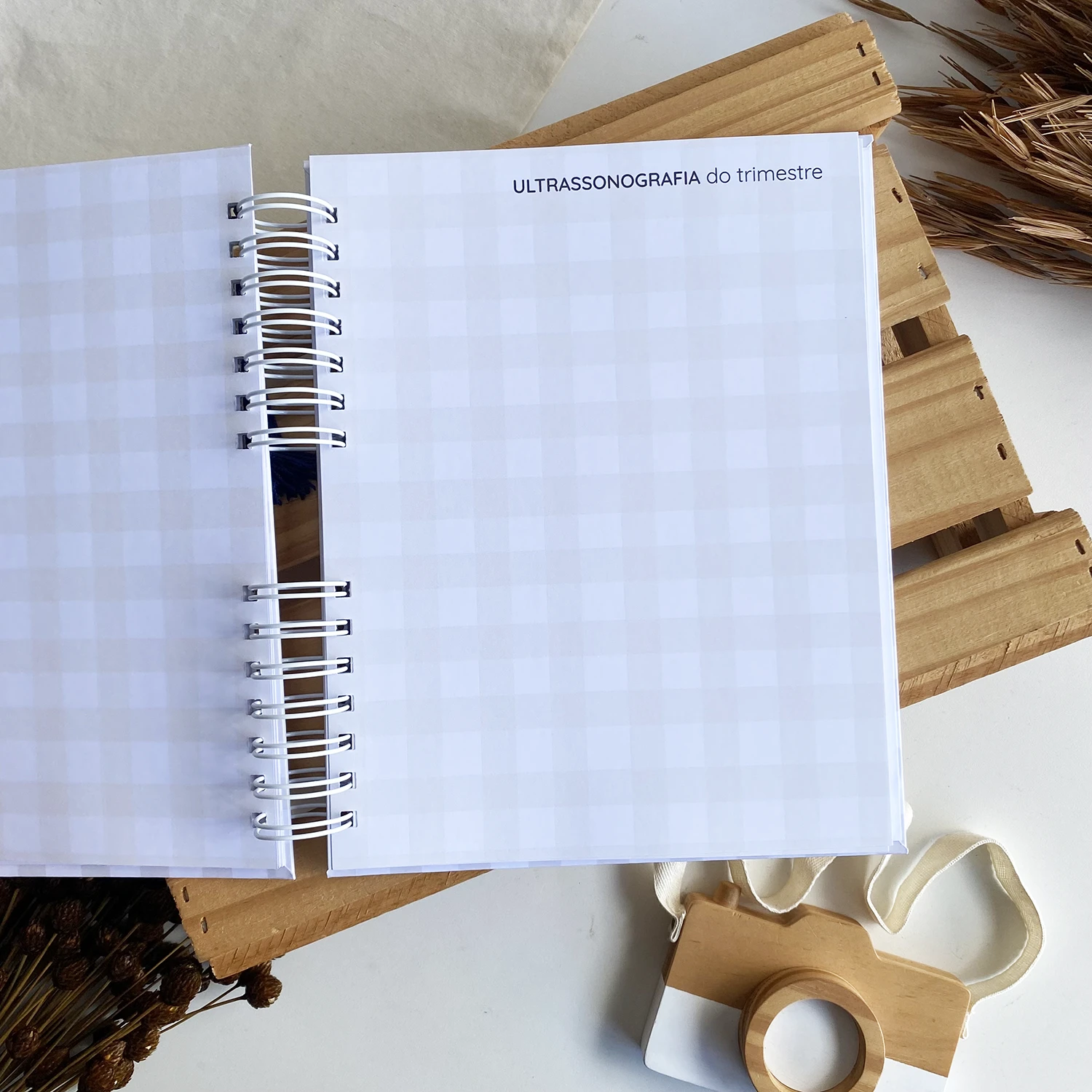 O Diário da Gestante possui espaços para registrar diversos momentos, incluindo textos de todas as semanas, fotos de todos os meses em um tamanho incrível de 15×21 e ultrassonografias de todos os trimestres.