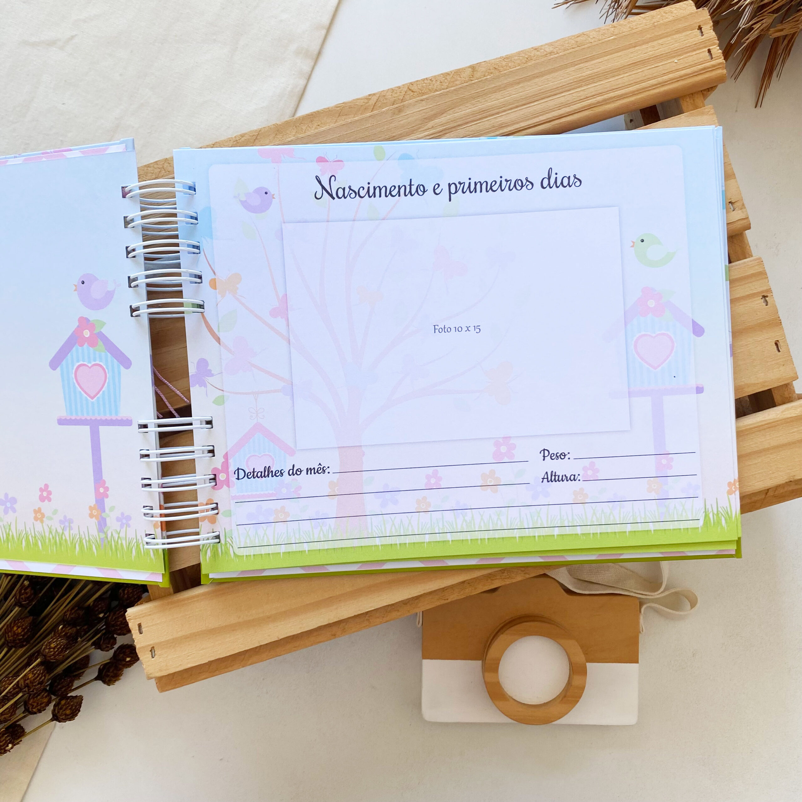 O kit contendo Livro do Bebê e Álbum de Fotos ou Mesversário é uma linda combinação para não perder nenhum detalhe dos primeiros anos do seu bebê/.