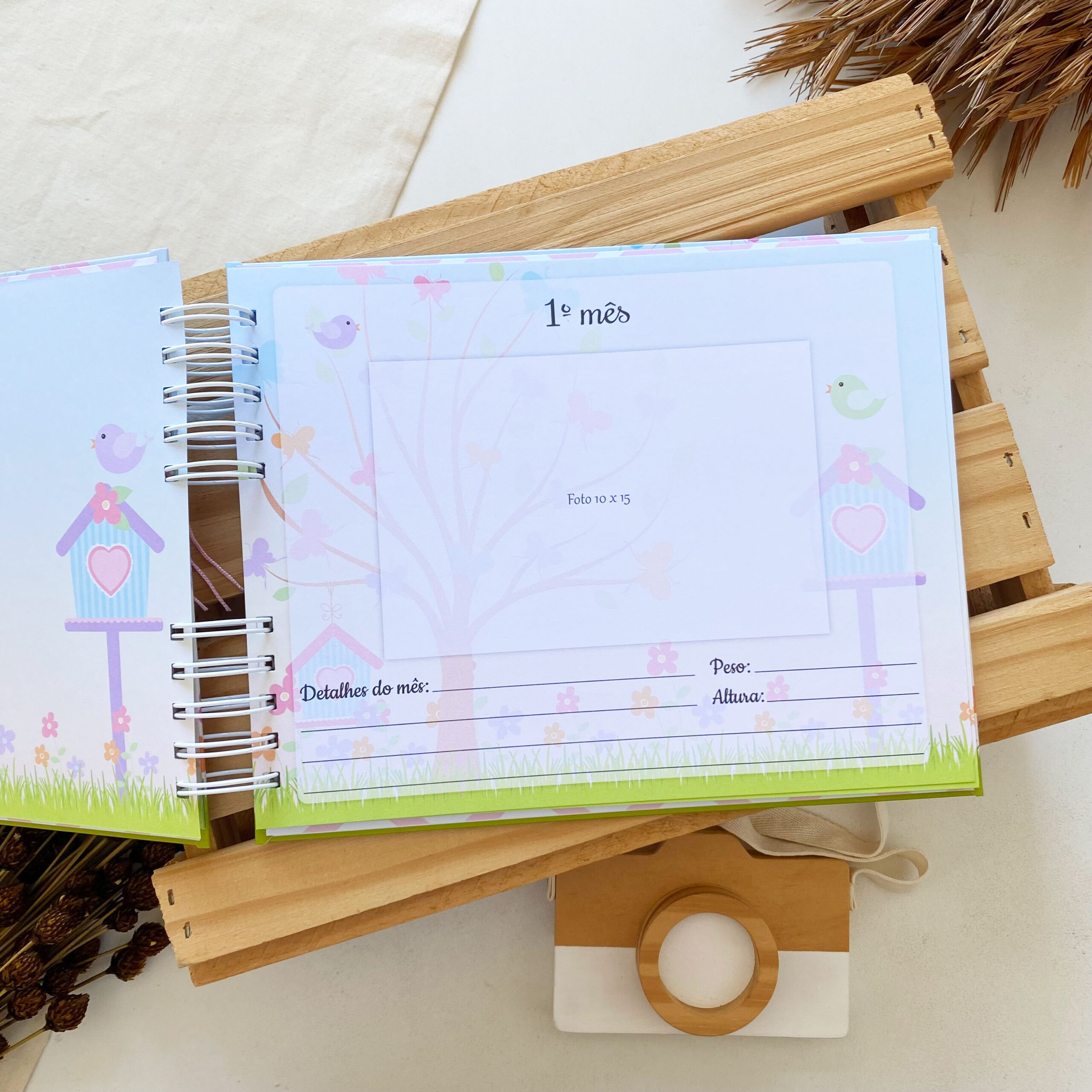 O Álbum de Fotos ou Mesversário é ideal para registrar o acompanhamento mensal do bebê desde o nascimento até o primeiro aninho.