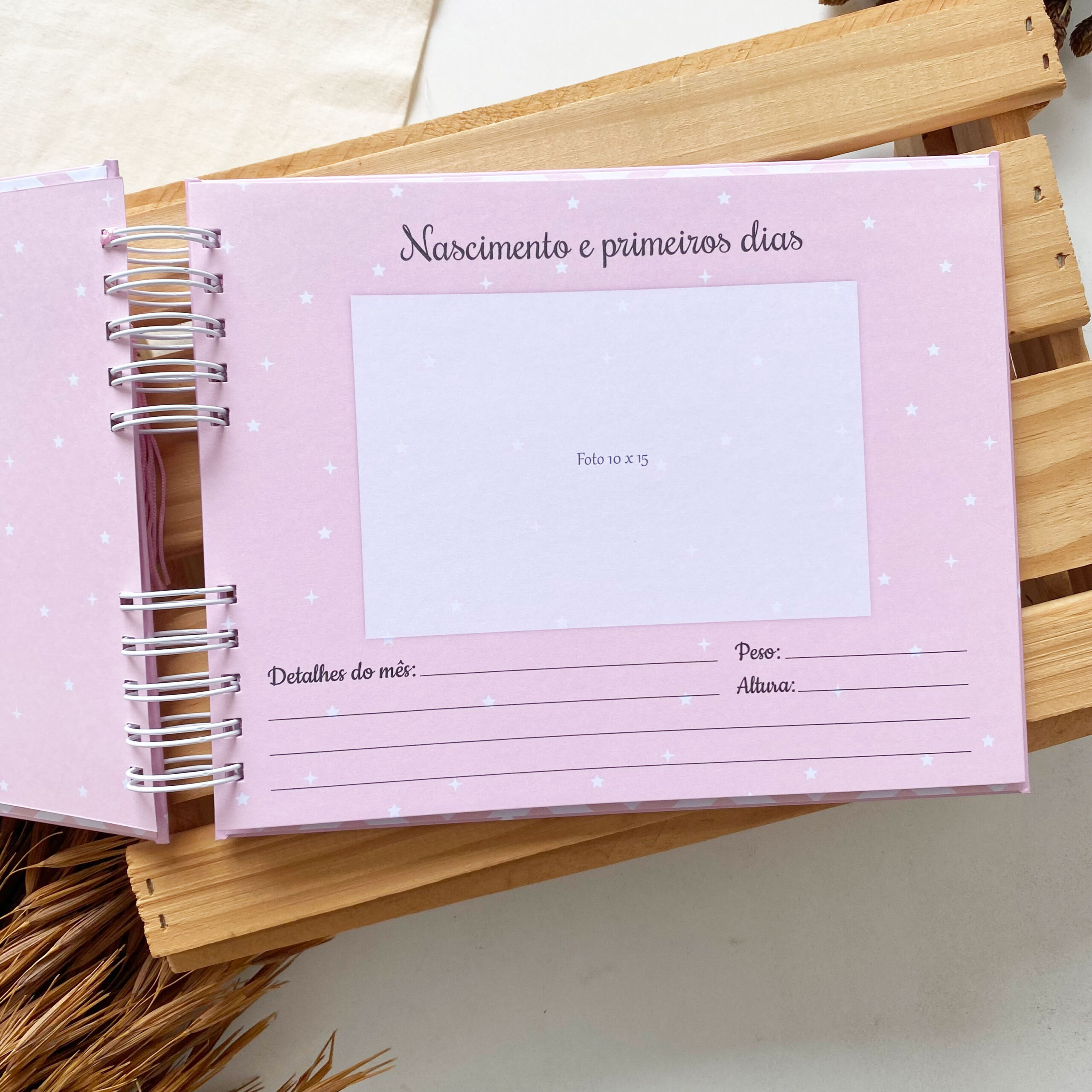 Ele captura e preserva memórias importantes como nascimento, primeiros passos, origem do nome, mesversários, primeiro dia na escola e muito mais. É o companheiro perfeito para acompanhar o crescimento do seu bebê e garantir que nenhum momento especial seja esquecido.