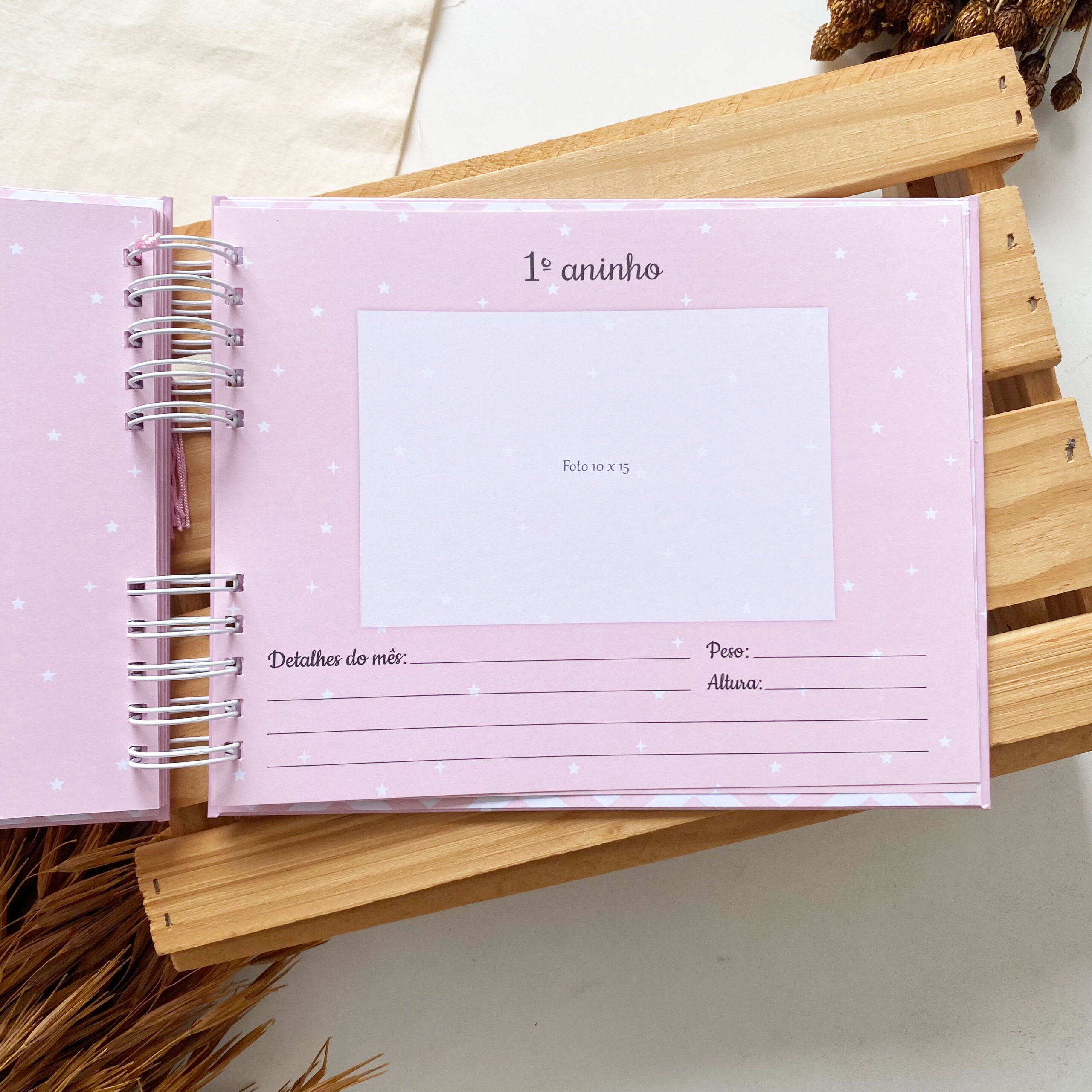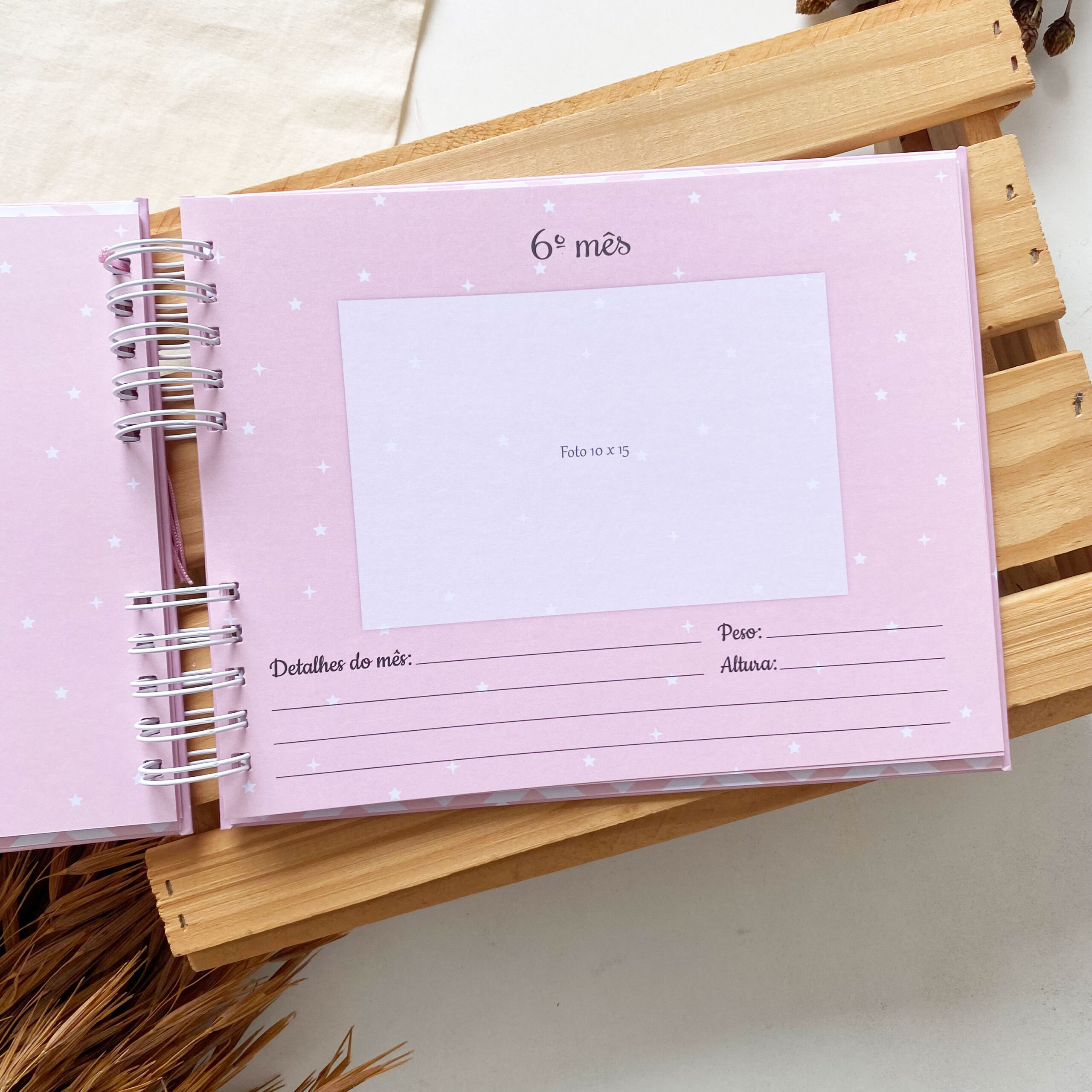 O Álbum de Mesversário é ideal para registrar o acompanhamento mensal do bebê desde o nascimento até o primeiro aninho.