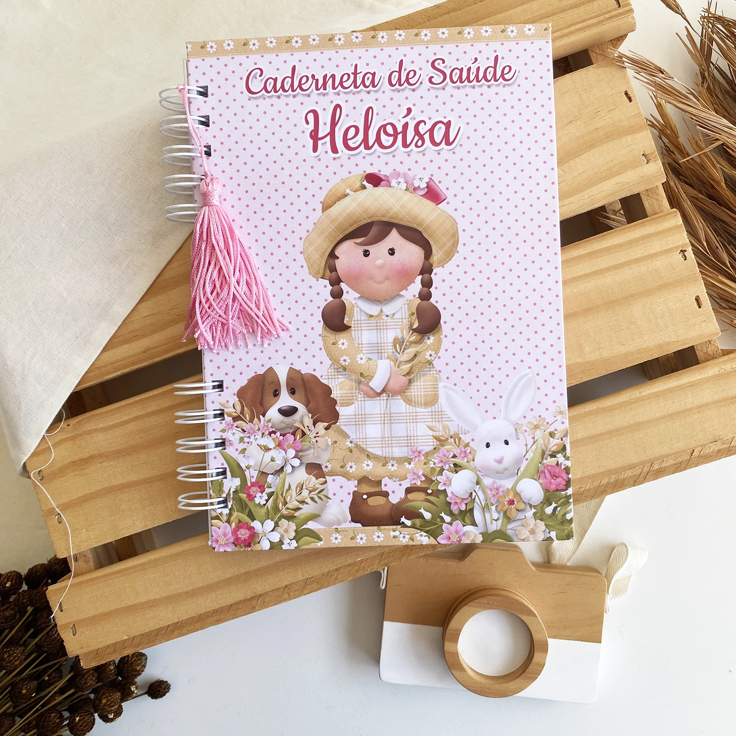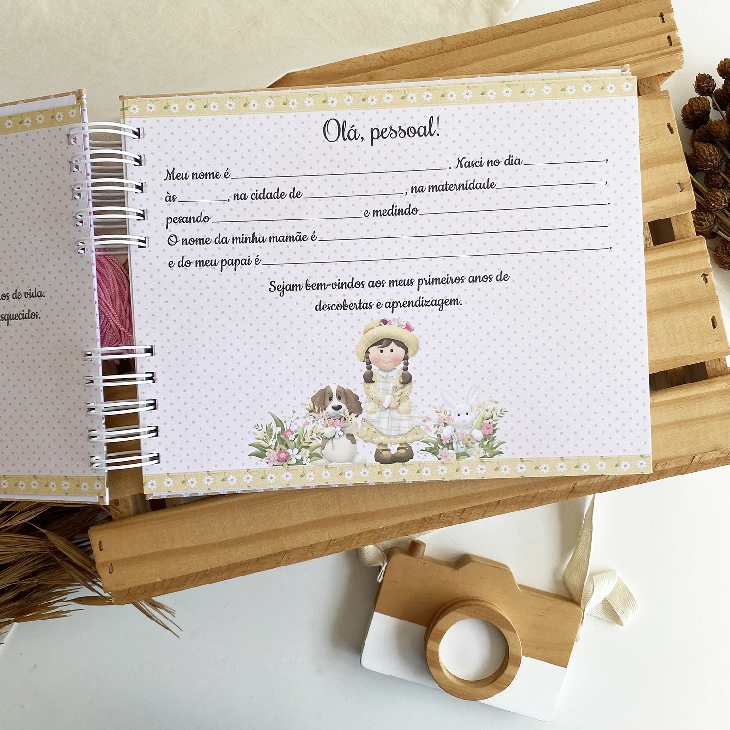 – Capa dura personalizada com o nome do bebê na capa;