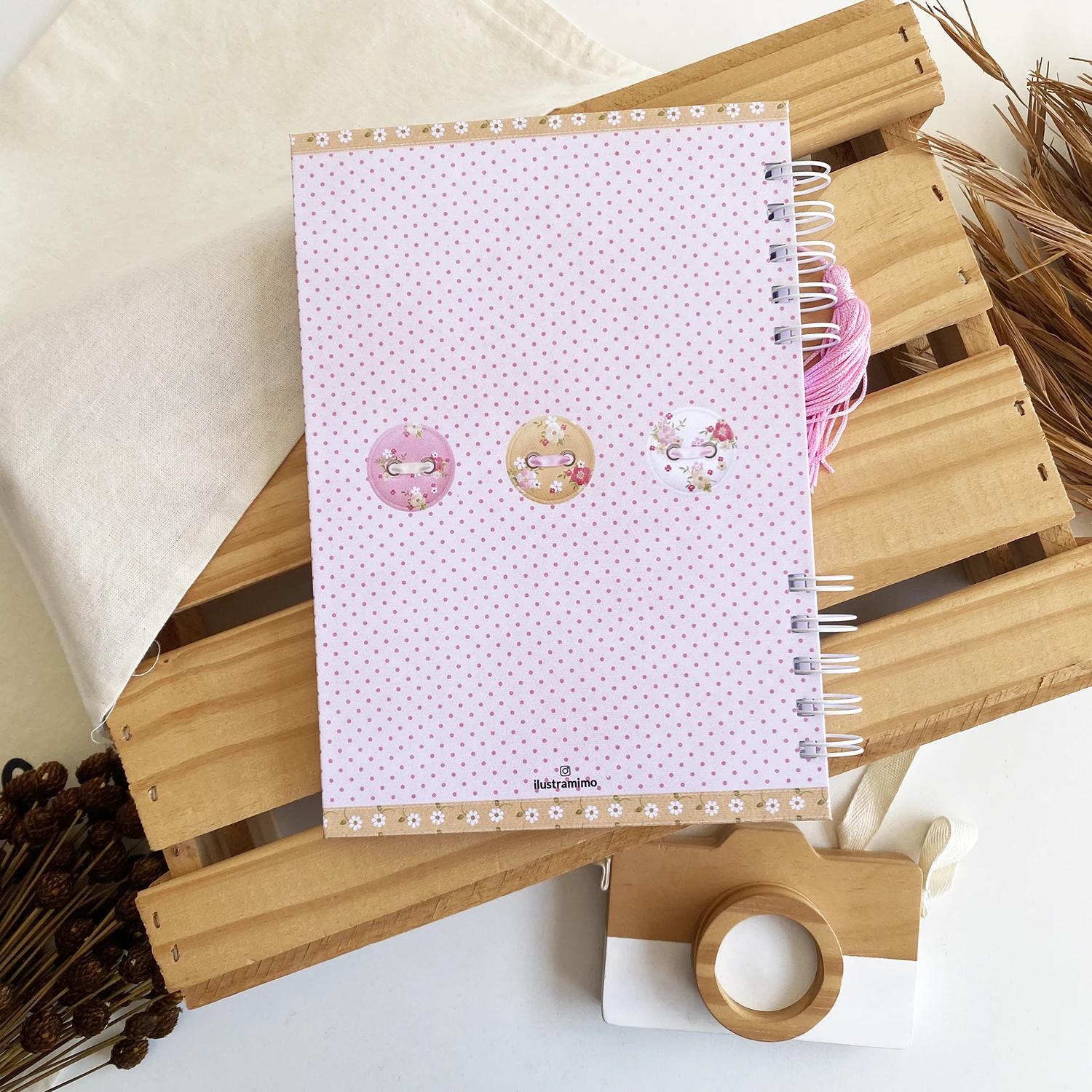 – Tamanho total 15,5 cm de largura x 22 cm de altura. Obs.: O arame aumenta a caderneta em 1,5 cm na largura.