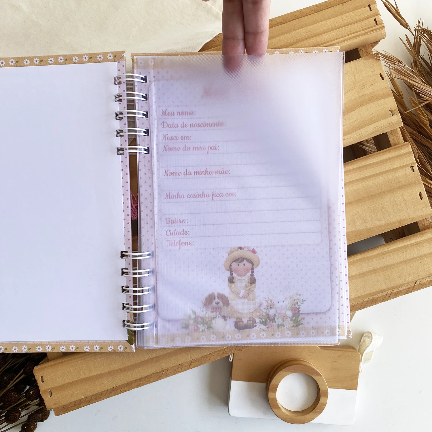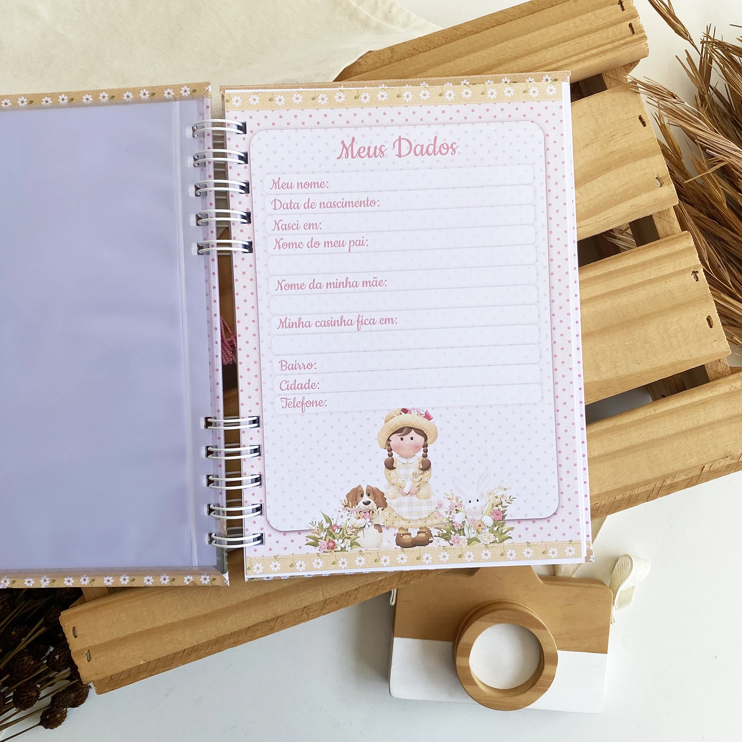 – Página de dados do bebê personalizada de acordo com a capa;