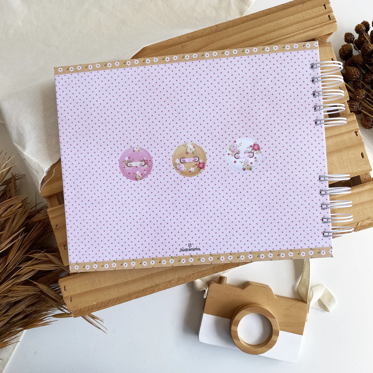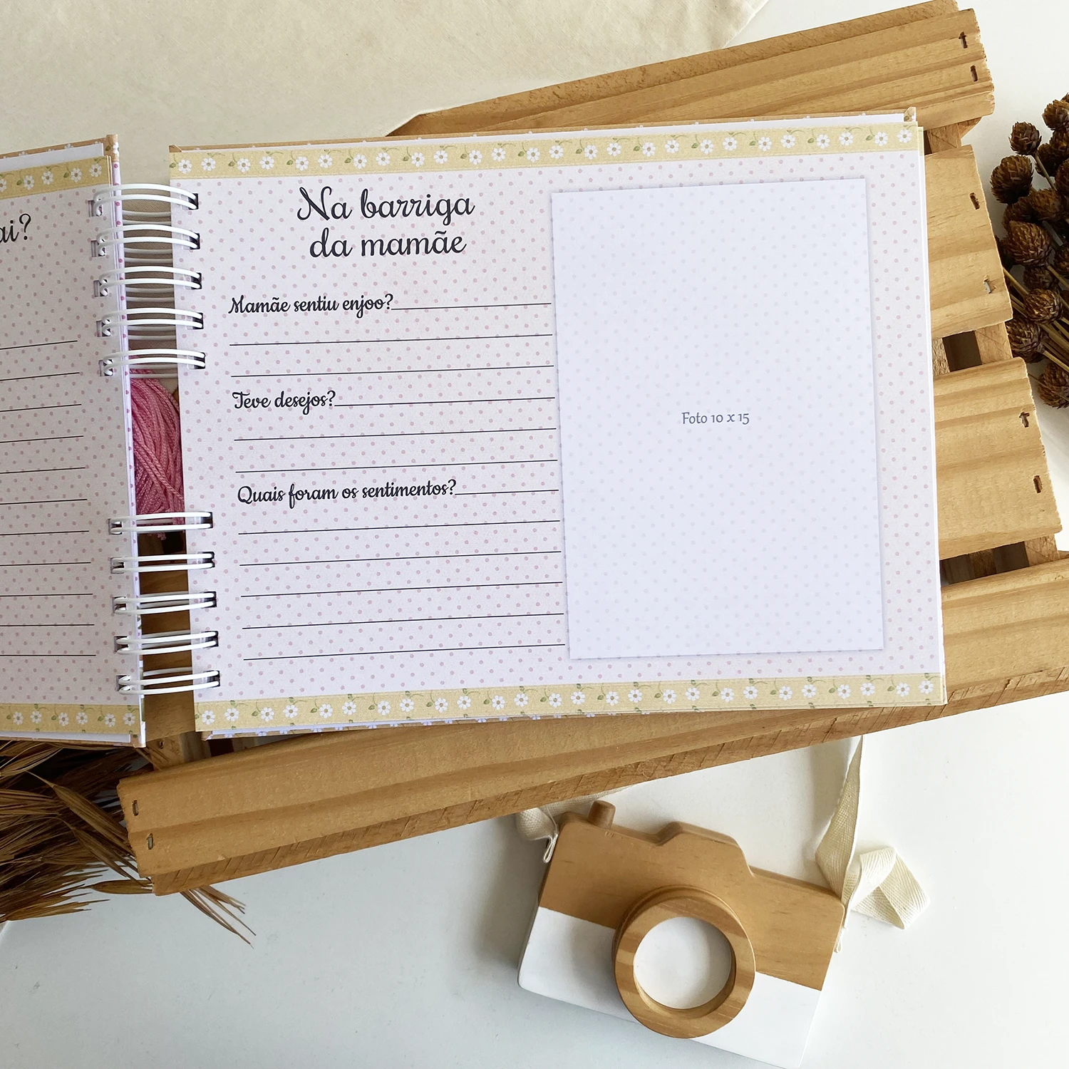– Folhas grossas (180g) para suportar o peso das fotos e não marcar ao escrever;