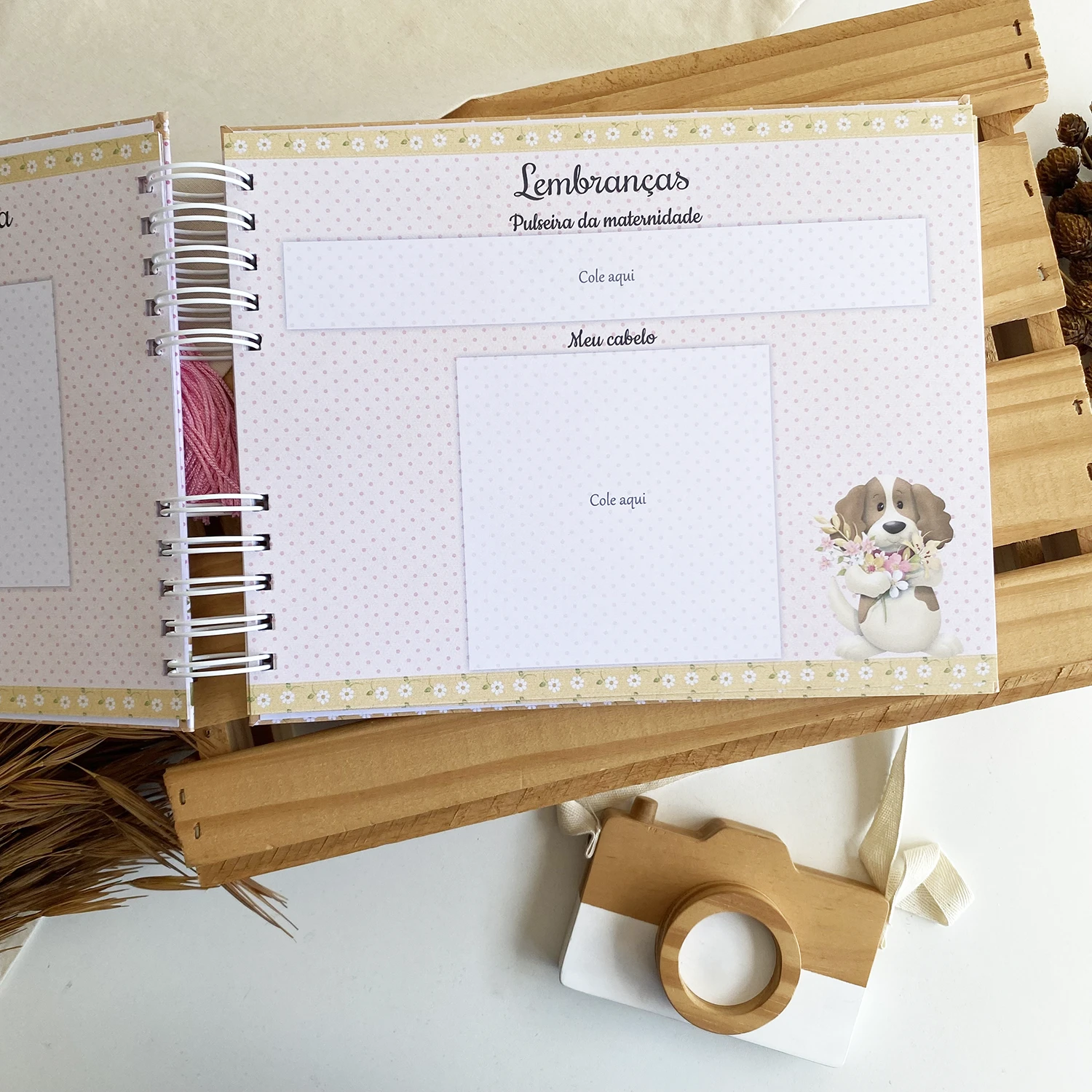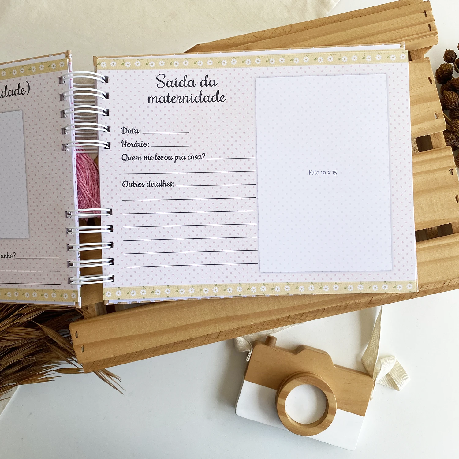Páginas para fotos dos primeiros dias em casa;