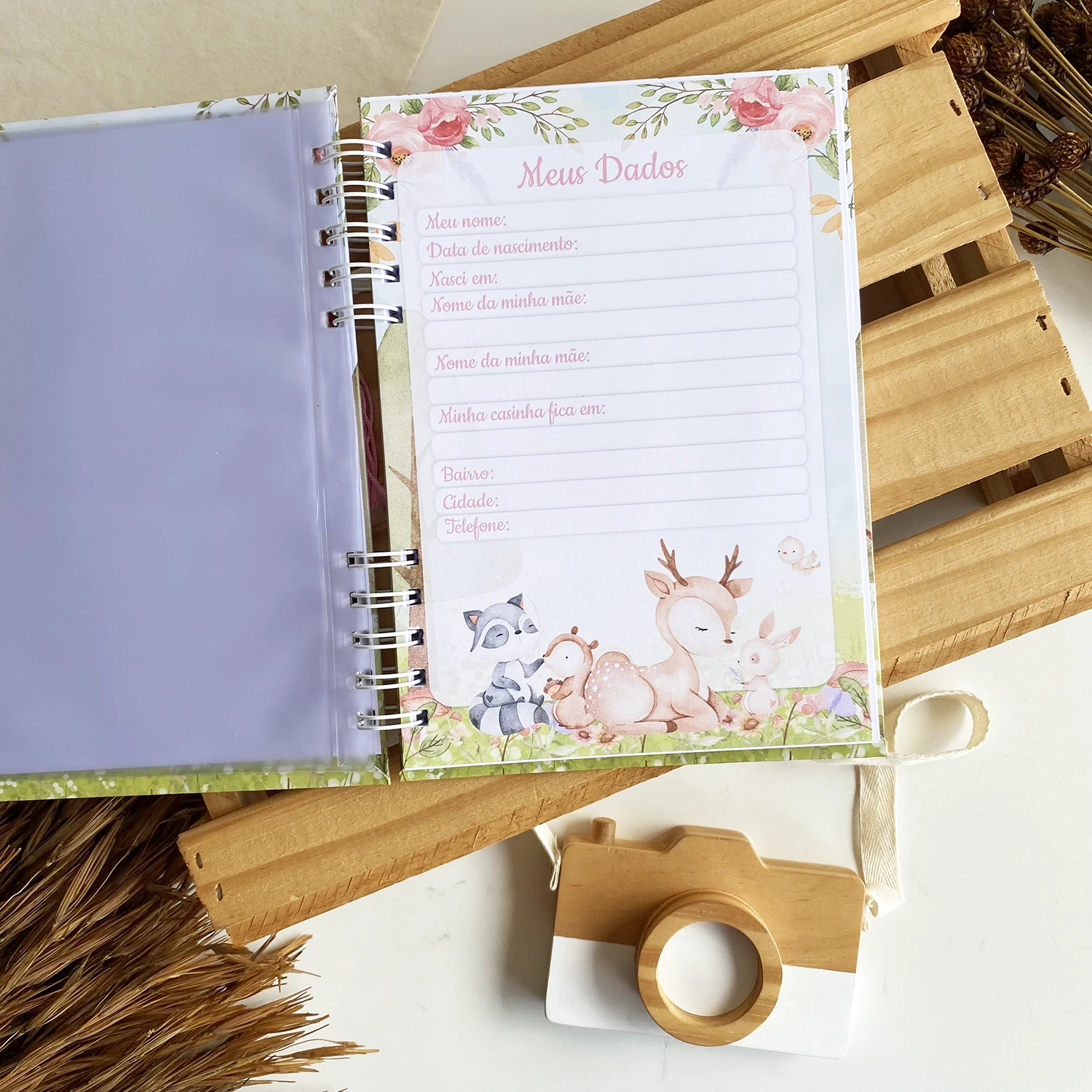– Página de dados do bebê personalizada de acordo com a capa;