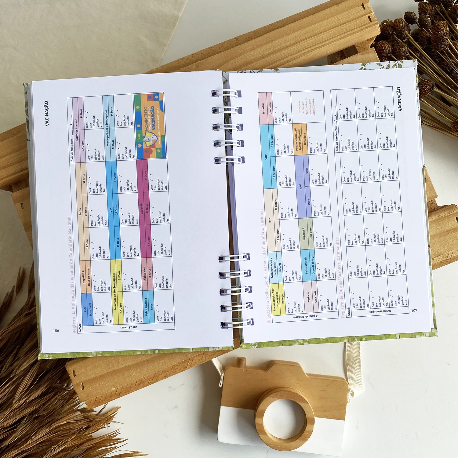 A Caderneta de Saúde (vacina) personalizada possui o mesmo conteúdo da caderneta disponibilizada gratuitamente pelo Ministério da Saúde nas maternidades ou postos de saúde. Porém, essa personalização além de proporcionar uma melhor qualidade e durabilidade, a deixa com um toque de carinho e amor, ideal para levar para a maternidade.