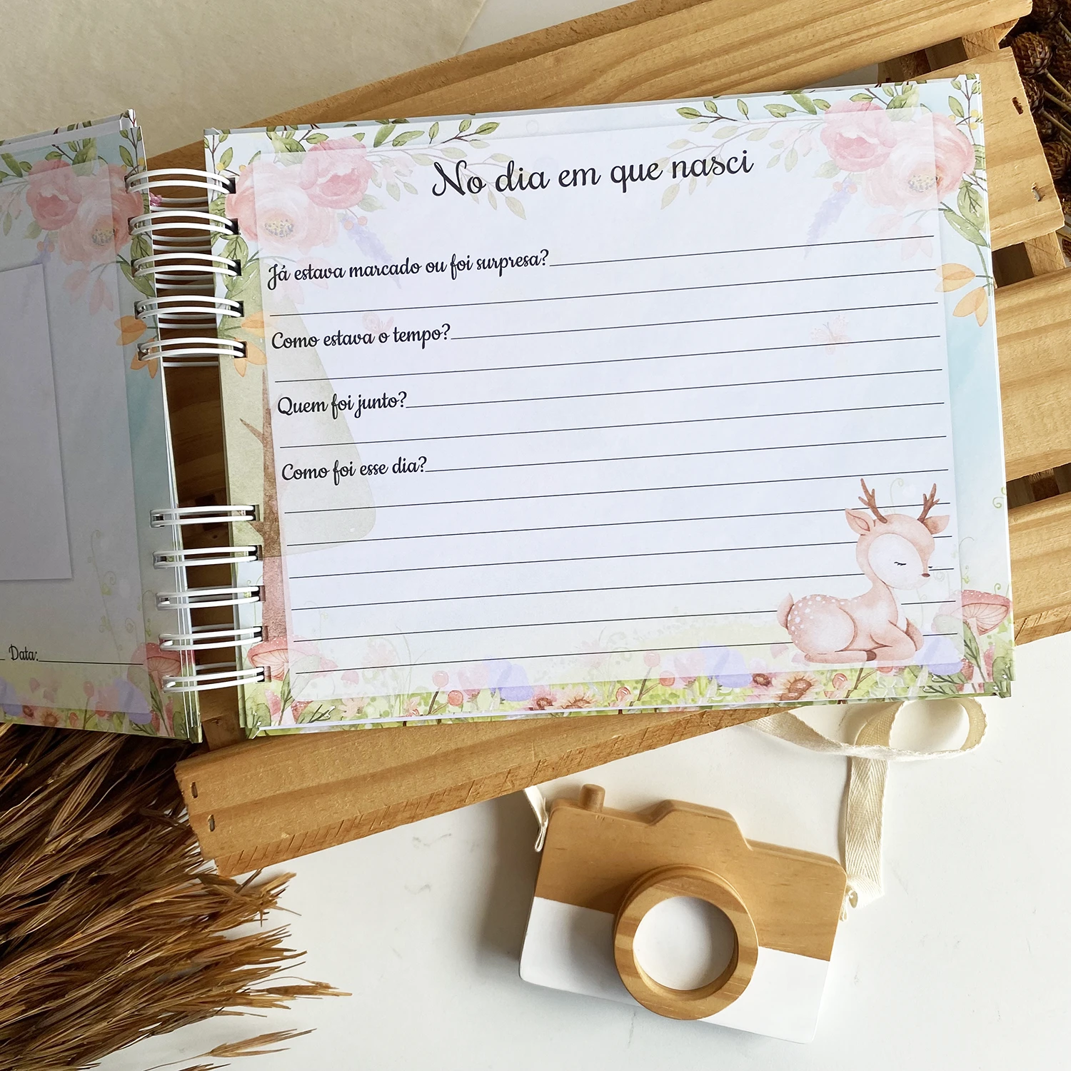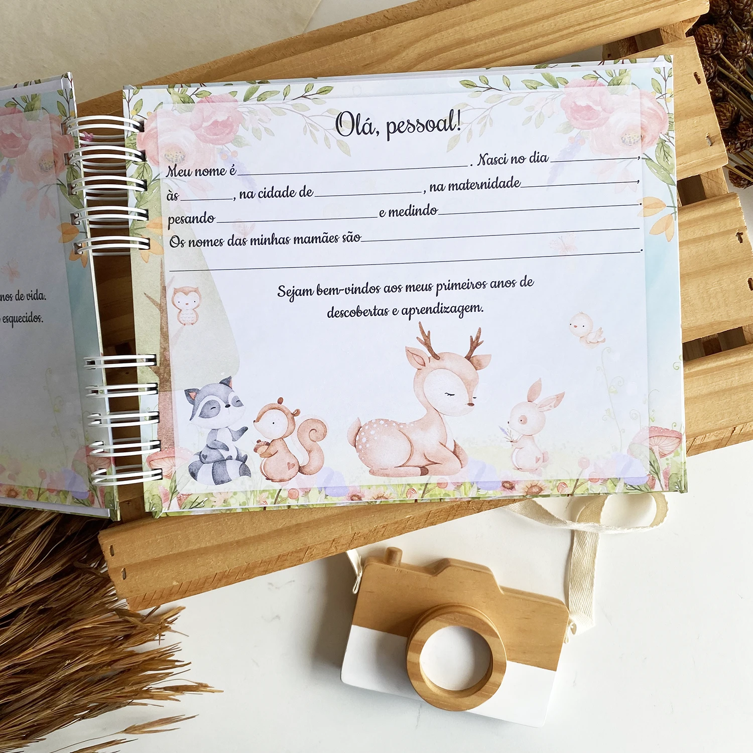 – Capa dura personalizada com o nome do bebê na capa;