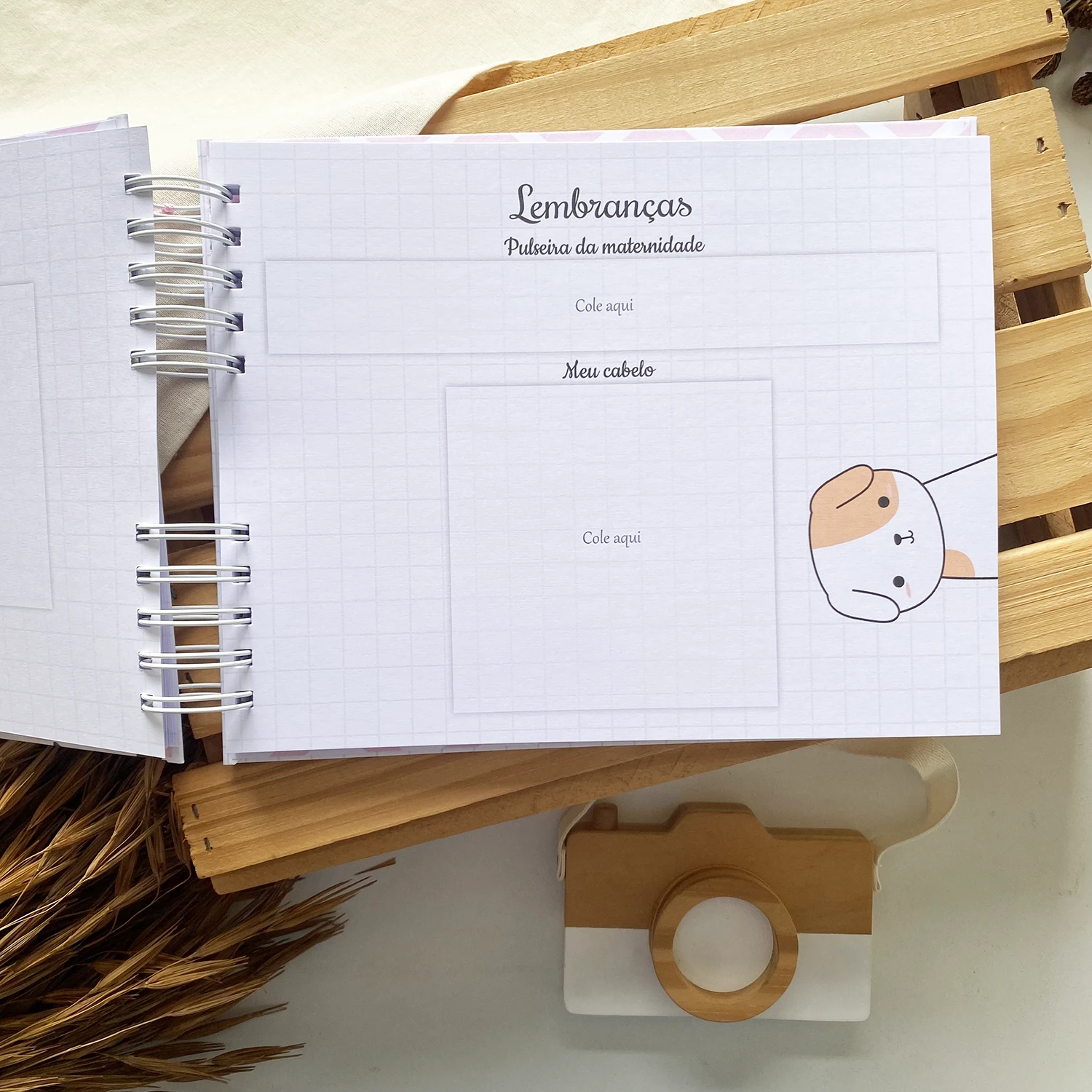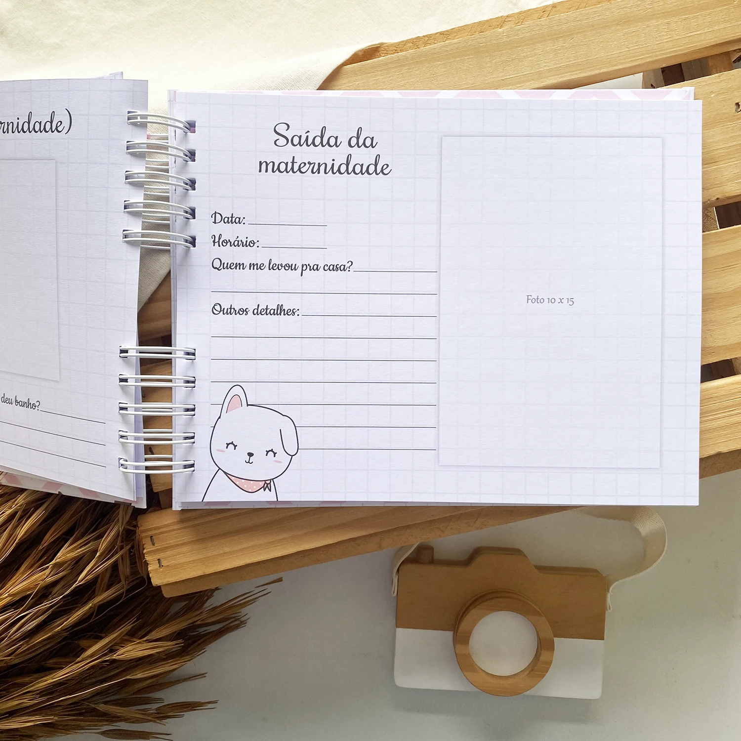 - Páginas para fotos dos primeiros dias em casa;