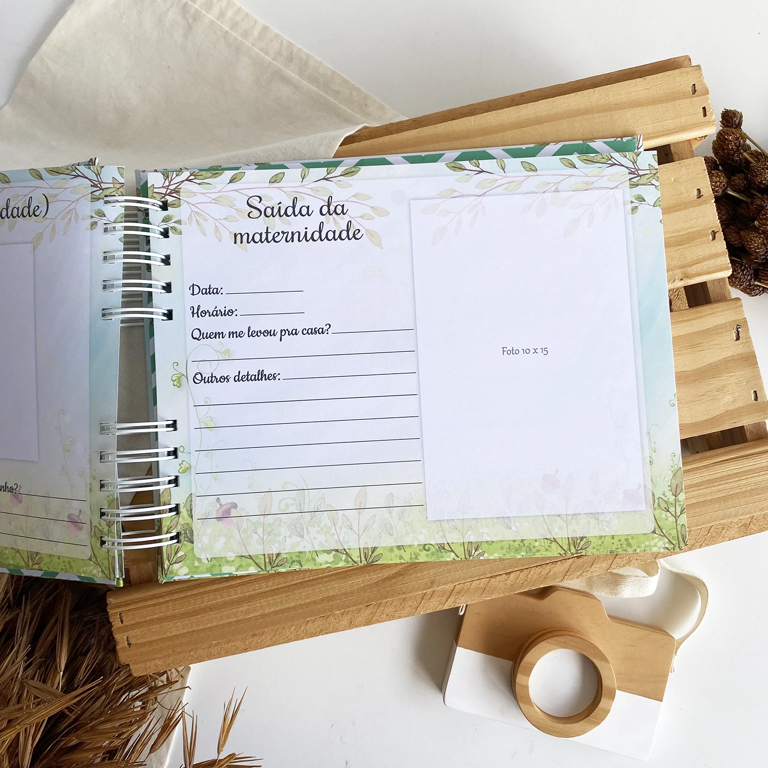 - Páginas para fotos dos primeiros dias em casa;