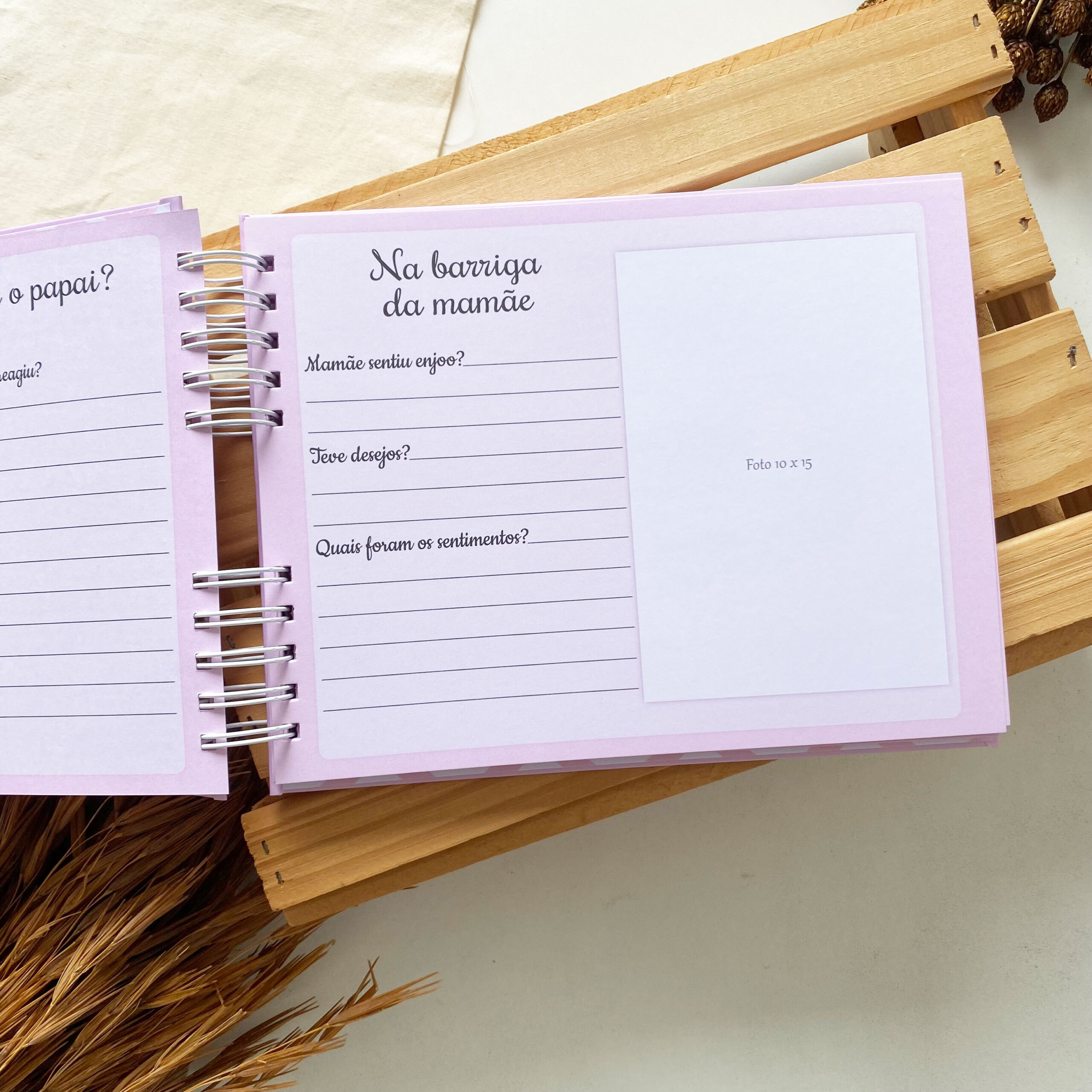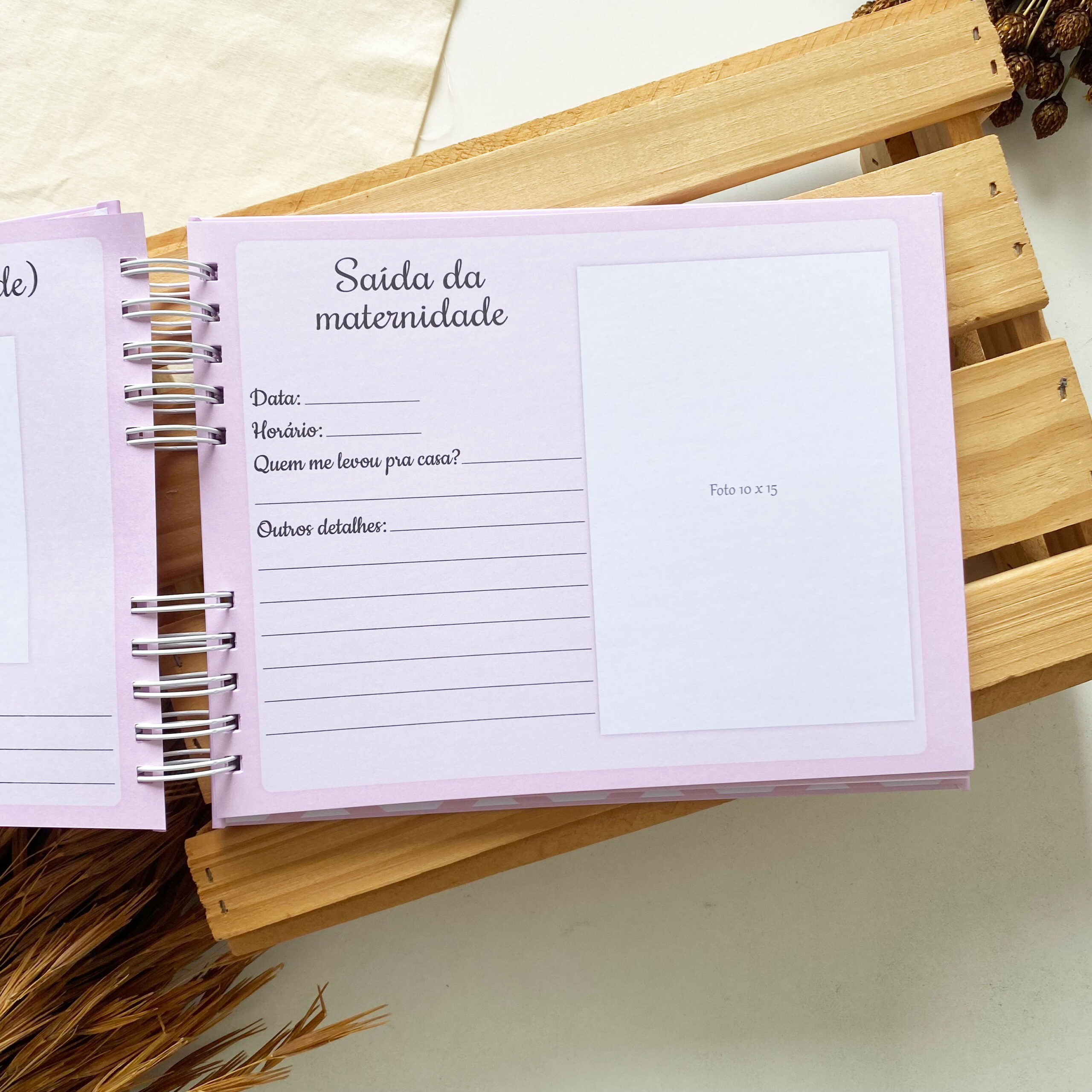 - Páginas para fotos dos primeiros dias em casa;