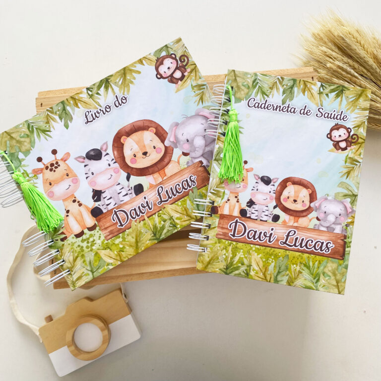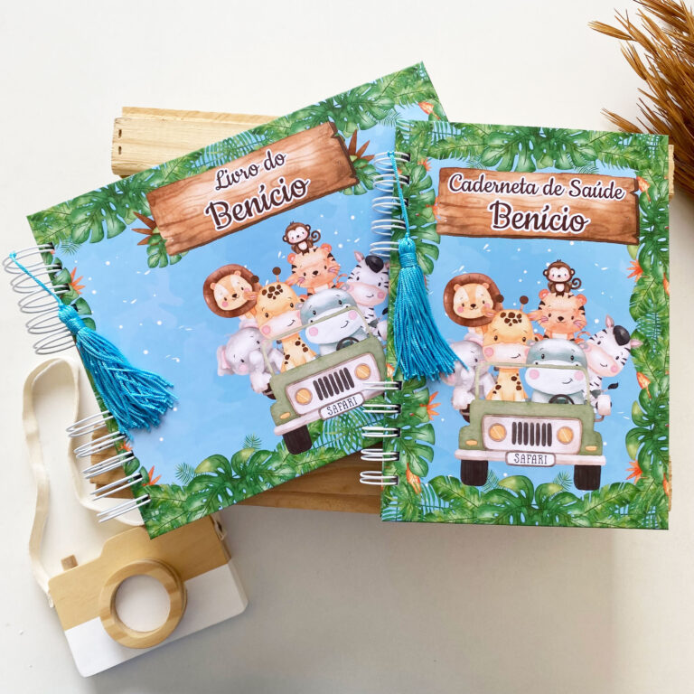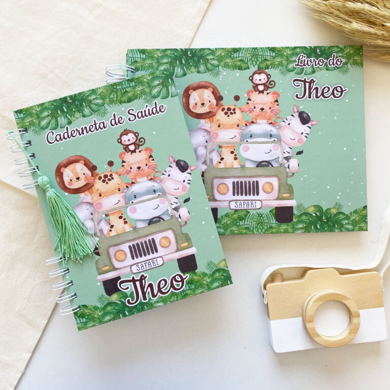 Kit Livro e Caderneta Safári 4 Kit especial com o mesmo tema contendo o Livro do Bebê e a Caderneta de Saúde.