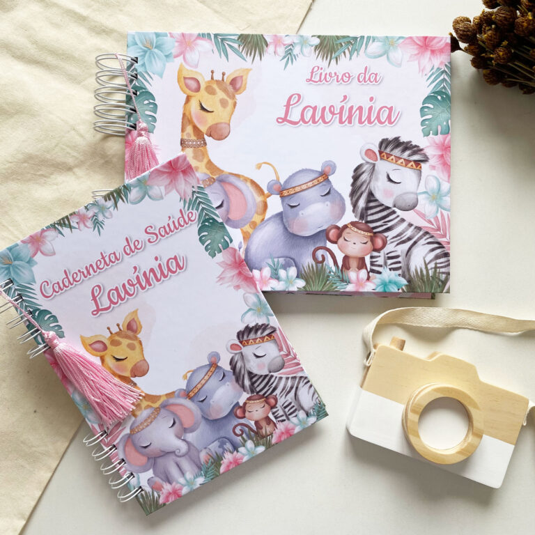 Kit Livro e Caderneta Safari 22 Kit especial com o mesmo tema contendo o Livro do Bebê e a Caderneta de Saúde.