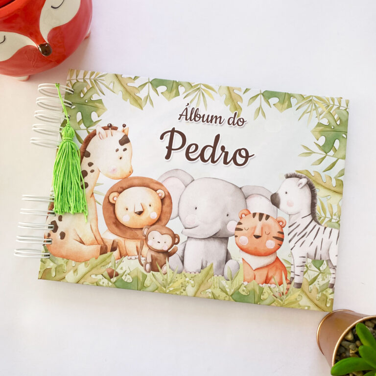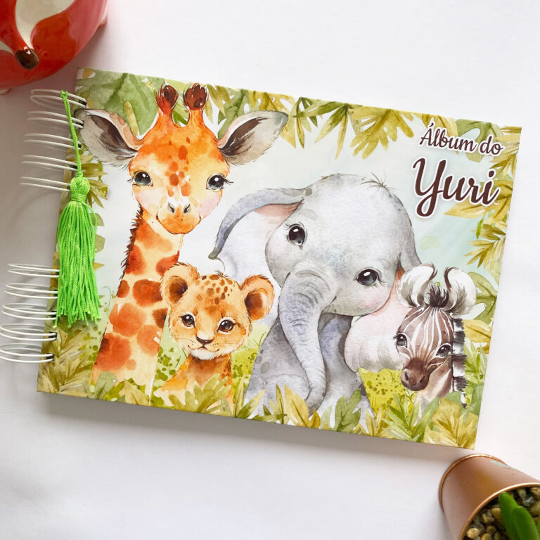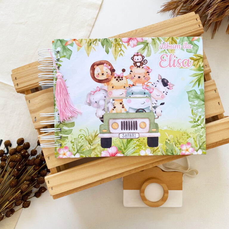 Álbum de Mesversário Safári 20 O Álbum de Mesversário é ideal para registrar o acompanhamento mensal do bebê desde o nascimento até o primeiro aninho.