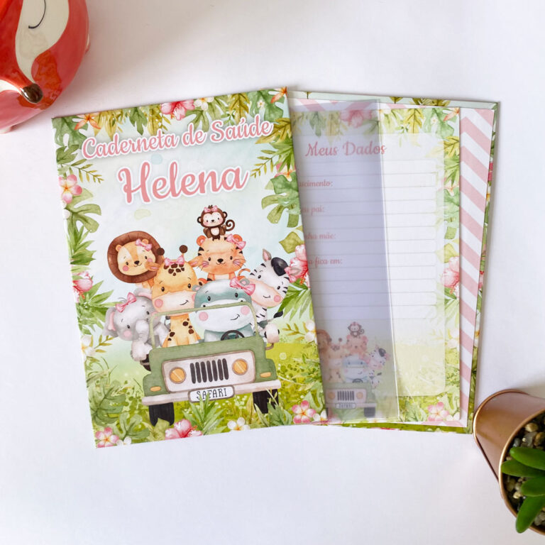 Capa Caderneta Safári 8 Personalize com um toque de carinho e amor a caderneta de saúde que o bebê recebeu na maternidade.
