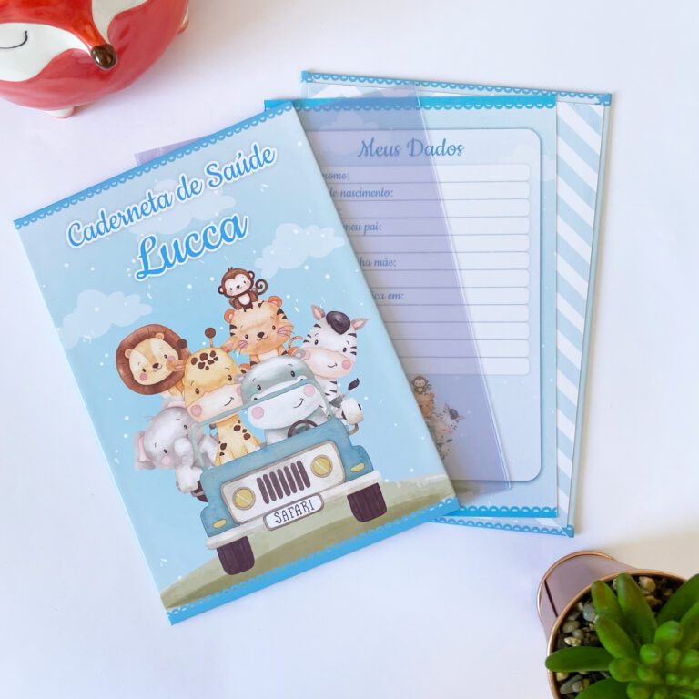 Capa Caderneta Safári 6 Personalize com um toque de carinho e amor a caderneta de saúde que o bebê recebeu na maternidade.
