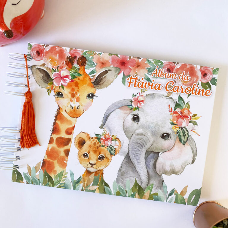 Álbum de Mesversário Safári 2 O Álbum de Mesversário é ideal para registrar o acompanhamento mensal do bebê desde o nascimento até o primeiro aninho.